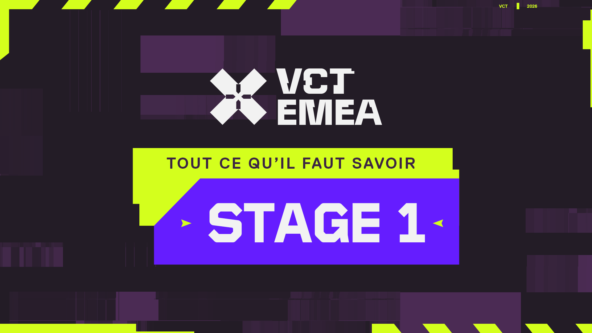 Le Stage 1 du VCT EMEA 2026 est une compétition e-sportive majeure dont l'enjeu principal est la qualification de trois équipes de la région pour le tournoi international des VALORANT Masters London. Les résultats obtenus influenceront également la qualification pour les VALORANT Champions Shanghai en fin de saison.