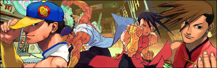 - Alex : Américain qui devait être le nouveau personnage principal de la licence. Il rejoint le tournoi pour venger son ami et mentor Tom, blessé par le boss final du jeu. Le personnage est largement inspiré de la star du catch de l'époque Hulk Hogan, qui était le plus célèbre catcheur au monde dans la seconde partie des années 90 et qui avait combattu dans la ligue japonaise dans les années 80. Hogan n'est cependant pas la seule inspiration du personnage, qui fait également référence à Axl Rose, le leader des Guns and Roses, qui tout comme lui porte un bandana rouge. De plus, Alex est un anagramme d'Axel. Une troisième source d'inspiration pourrait être Mike Awesome, un autre catcheur, qui lui arborait fréquemment des peintures sous les yeux. Son style de combat s'inspire du catch bien entendu, avec notamment son Power Bomb, mais également du kick-boxing. Ce n'est cependant pas un choppeur, et il est plutôt considéré comme un combattant équilibré même s'il reste plus difficile à bien utiliser que la moyenne du cast des Street Fighters.