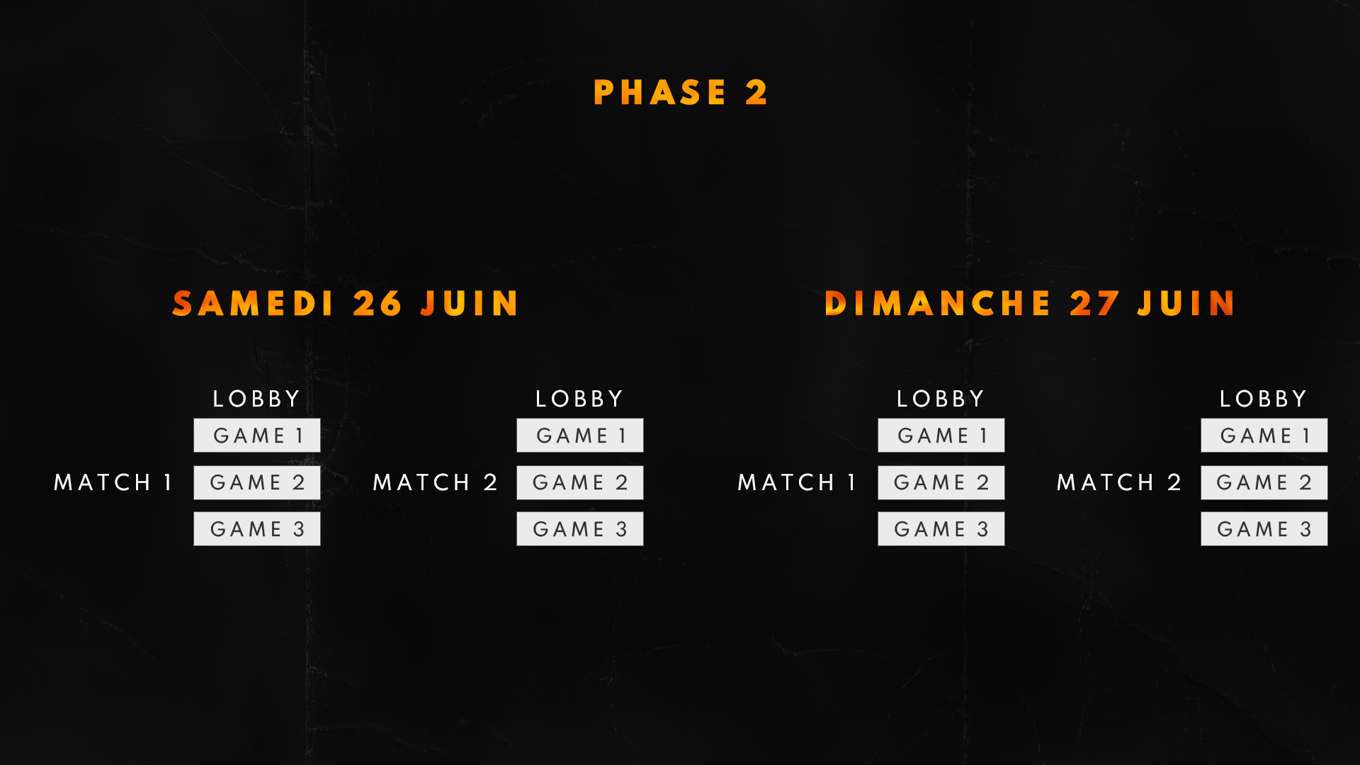 Ce second week-end se déroulera sur le même format que le précédent. Les 32 joueurs sont répartis dans des lobbies et disputent 4 matchs de 3 parties chacun. Le système de points est également identique. A la fin de chaque partie, les joueurs marquent des points, puis reçoivent des points bonus selon leur classement dans leur match