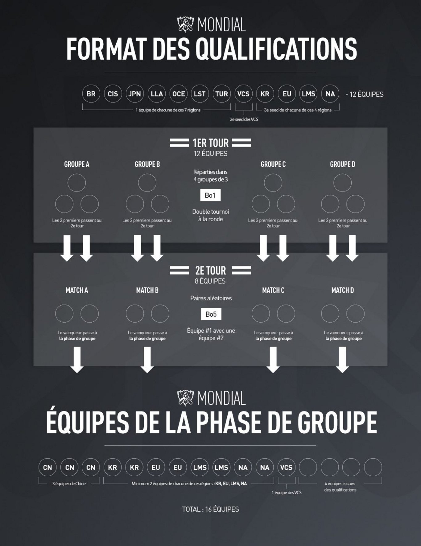 - La Chine (LPL) va recevoir 3 seeds de phase de groupes suite à ses performances ces deux dernières années lors de tournois internationaux, tels que le Mid-Season Invitational et le Championnat du monde 2018.