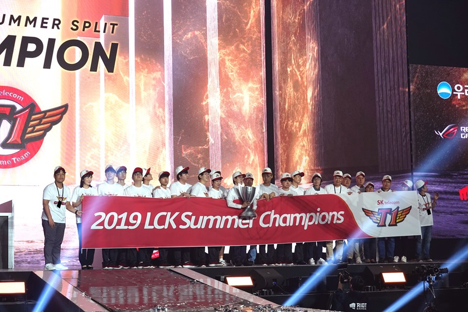 Les triple champions du monde devaient absolument faire oublier une année 2018 vierge de tout titre. Totalement reconstruite autour de Faker, l'équipe a accueilli de grands noms comme Khan et Mata, ainsi que des joueurs prometteurs avec Teddy et Clid. Le Spring Split fut presque totalement conforme aux promesses faites par un tel étalage de noms sur le papier, avec une deuxième place à l'issue de la saison régulière et des playoffs remportés sans perdre une seule manche. Les SKT semblaient de retour, prêts à redonner ses lettres de noblesse au League of Legends coréen. Le début du MSI semblait suivre le même chemin, avec des SKT qui furent les seuls à prendre une game aux champions du monde Invictus lors de la phase de groupe. Cependant, ils connurent aussi deux défaites face au champion européen G2. Malgré une belle prestation, les SKT ne purent battre les rois de l'Europe en demi-finale, terminant le tournoi à la troisième/quatrième place, soit le plus mauvais classement de l'histoire de l'équipe à un tournoi international. Ce revers laissa des marques et les joueurs de kkOma ratèrent leur retour en LCK, se retrouvant neuvièmes à l'issue de la troisième semaine, et septièmes à la mi-saison, avec quatre victoires pour cinq défaites. Pendant cette période, l'équipe donna des chances à son banc, et Effort sut saisir la sienne, poussant Mata en dehors du cinq titulaire. Ce changement permit aux SKT de se relancer, faisant une seconde partie de saison excellente avec sept victoires pour deux défaites, terminant à la quatrième place synonyme de playoffs. Ils montrèrent quelques faiblesses face aux Freecs, mais les corrigèrent rapidement et ne laissèrent aucune chance à leurs adversaires suivants pour remporter un second titre en LCK. Après avoir racheté leur honneur sur la scène coréenne, leurs yeux se tournent maintenant sur le Vieux continent et le Championnat du monde.