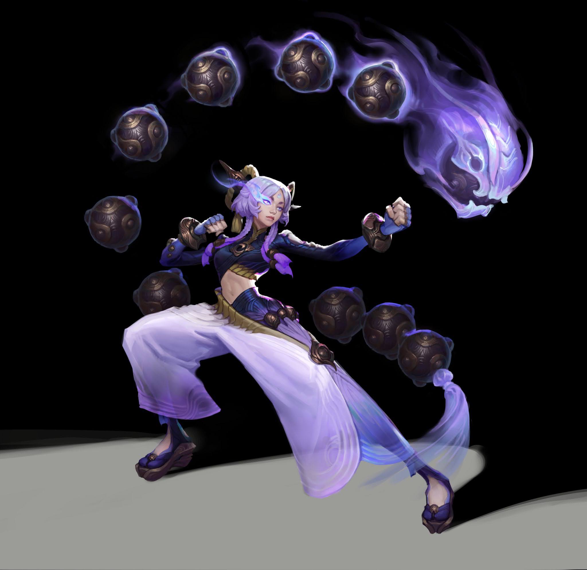 Originaire d’Ionia, Yunara est une ancienne combattante de l’Ordre Kinkou. Connue sous le nom de Poing des ombres, elle s’est sacrifiée pendant la guerre des Darkin pour empêcher une arme démoniaque de franchir les frontières du monde des esprits. En scellant le glaive dans un sanctuaire spirituel, elle s’y est enfermée elle-même. Ce n’est que bien plus tard, à la faveur de la floraison sauvage, qu’elle refait surface dans un monde qu’elle ne reconnaît plus, mais qu’elle devra à nouveau défendre avec des techniques tombées dans l’oubli.