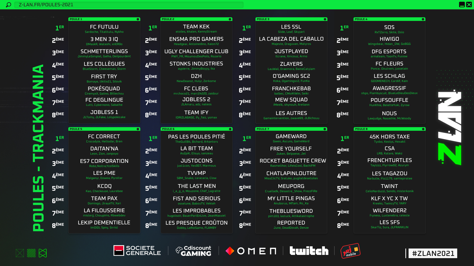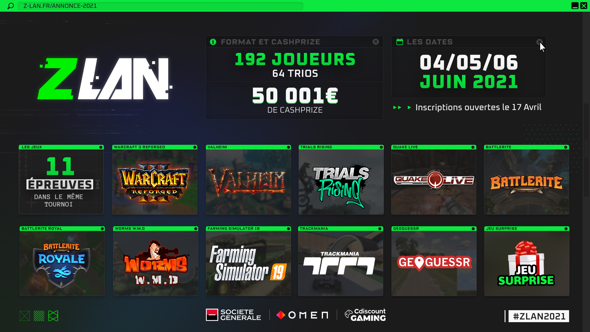 La Z Lan 2021 se déroulera cette année les 4, 5 et 6 juin à Lyon pour trois jours d'affrontements non-stop, dans un espace entièrement aménagé et décoré pour l’occasion, qui respectera à la fois les gestes barrières et les mesures de distanciation sociale.