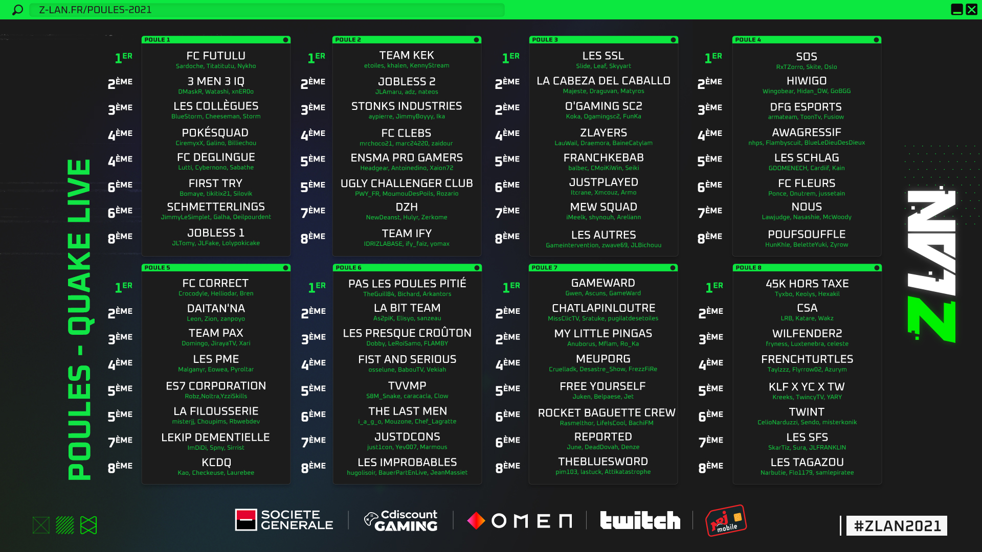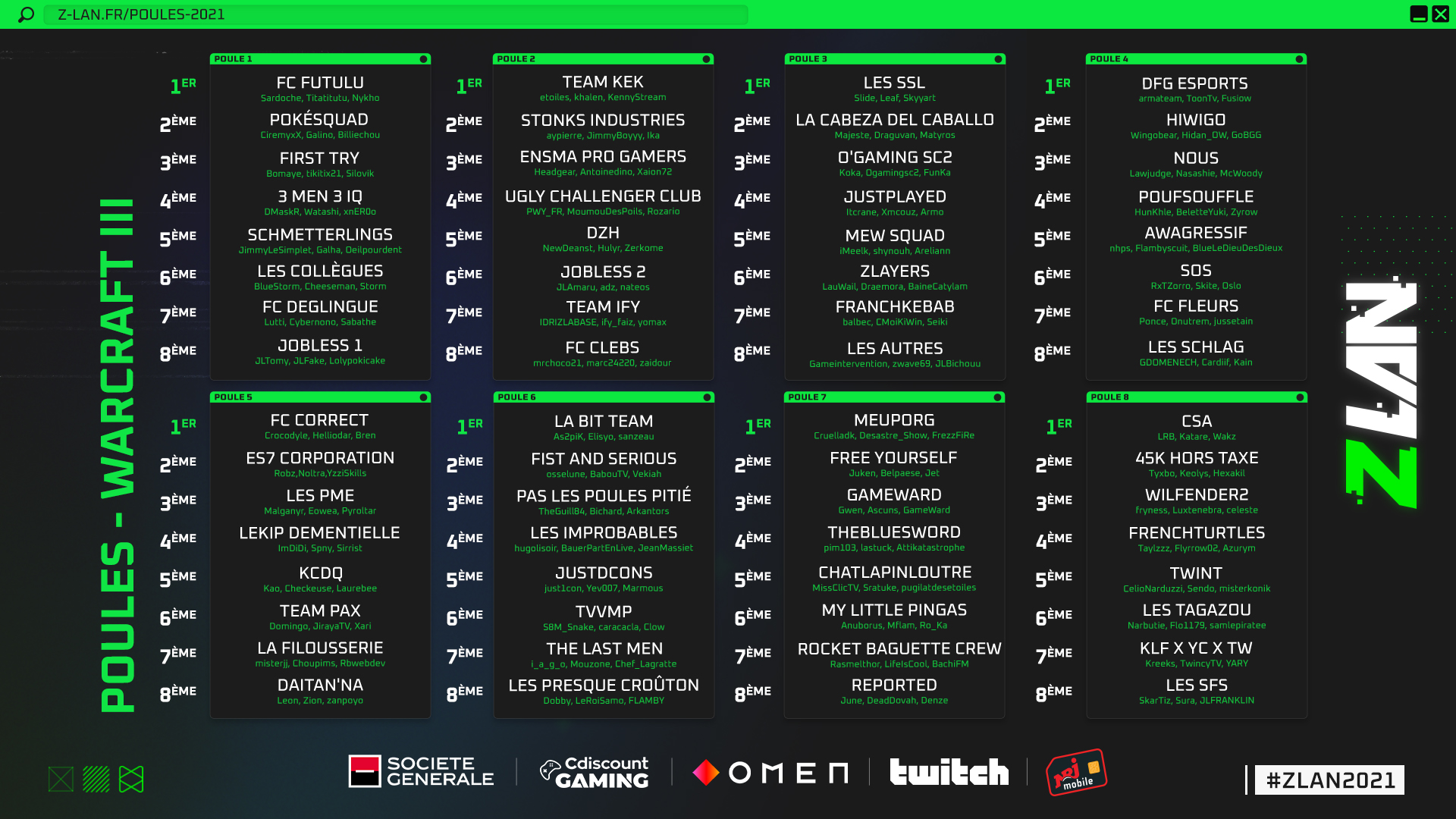 La Z Lan 2021 se déroulera cette année  les 4, 5 et 6 juin à Lyon pour trois jours d'affrontements non-stop, dans un espace entièrement aménagé et décoré pour l’occasion, qui respectera à la fois les gestes barrières et les mesures de distanciation sociale.