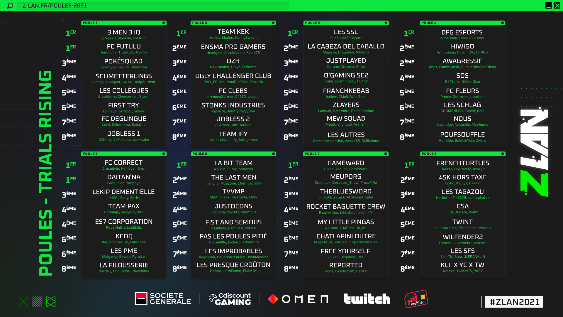Cette fois-ci, quelques changements sont à venir pour la compétition. La compétition verra s’affronter 192 joueurs répartis en trio (format 3v3) durant 3 jours, su un total 11 épreuves, avec un cashprize total de 50 001 €, dont 45 000 € pour le premier. Nouveauté de cette édition, le format de la Z LAN 2021 verra s’affronter des trios de joueurs ! Séparés dans différents groupes, ils devront alors récupérer un maximum de points pour tenter de se qualifier pour la phase finale. S’en suivra alors un arbre à élimination directe pour couronner les vainqueurs de la Z LAN.