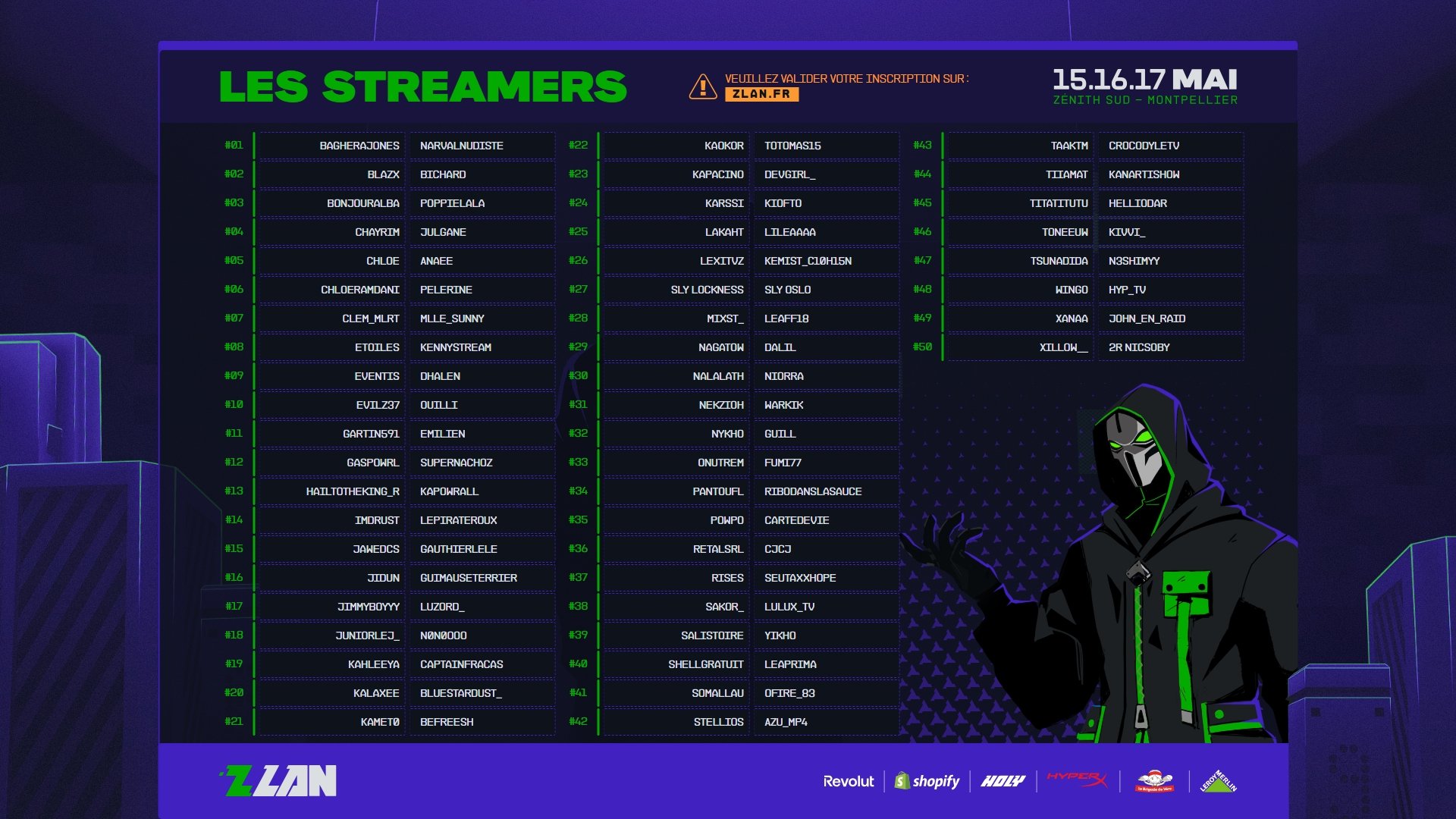 Les phases de sélection de la ZLAN 2026 ont rendu leur verdict, figeant la liste définitive des deux cents compétiteurs. Cette édition, qui devrait clôturer l'ère des affrontements en duo, se déroulera à la mi-mai avec une finale en public organisée au Zénith Sud de Montpellier.