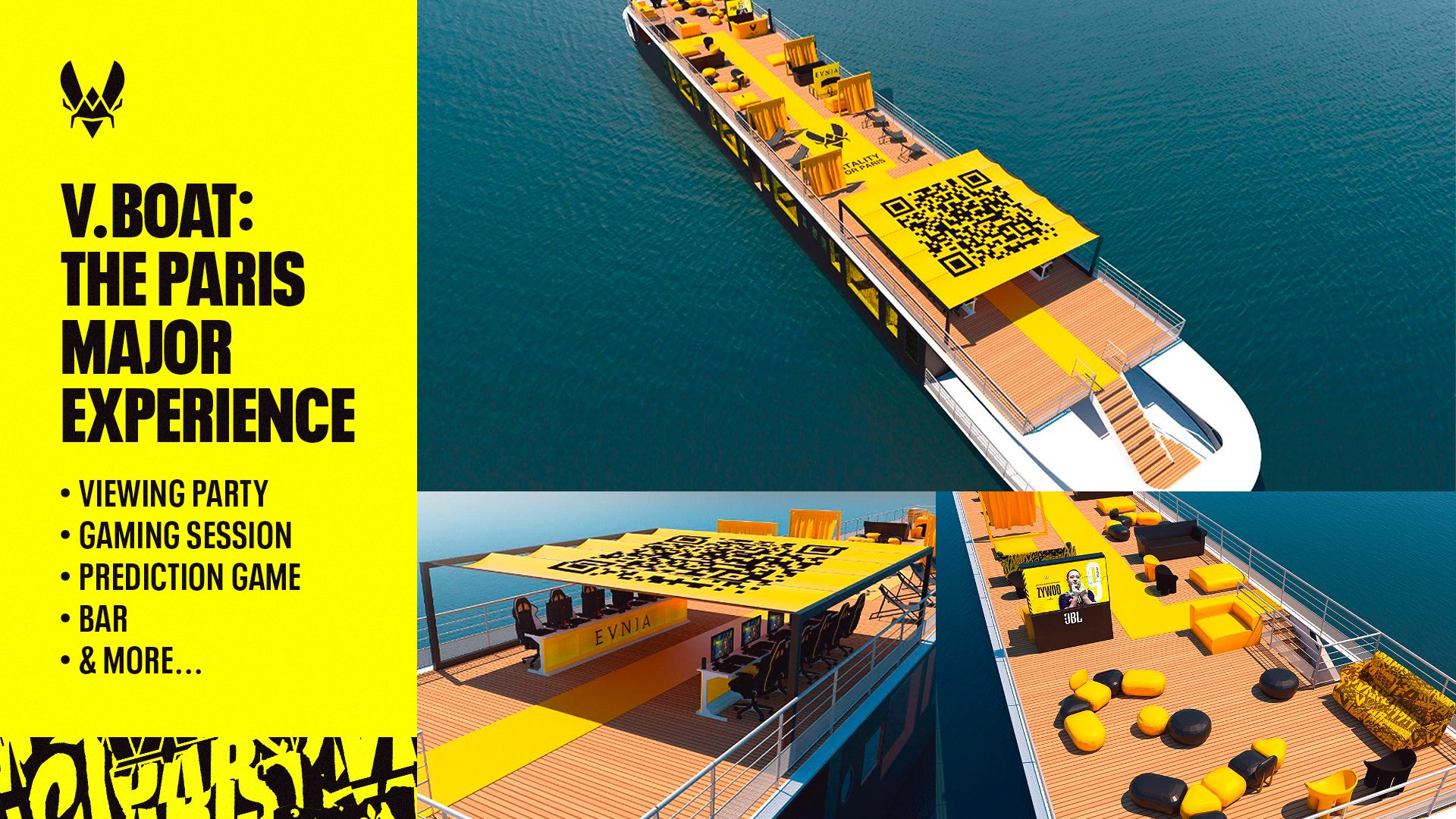 La structure française Team Vitality, dont son équipe CSGO va participer au BLAST.tv Paris Major 2023, présente son projet éphémère à l'occasion du tournoi : le V.BOAT. Le V.BOAT accueillera diverses activités, notamment le ZywOo's Corner où les fans pourront tester leurs compétences contre le joueur, mais également la création de contenu, des soirées de visionnage, des activations de partenaires, et bien plus encore