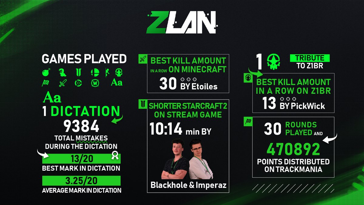 Le week-end dernier, les samedi 11 et dimanche12 mai, avait lieu la première édition de la ZLAN. Durant ces deux jours, 196 joueurs se sont donnés rendez-vous à Arles pour une compétition de jeu vidéo sur 10 titres différents. Il est l'heure de dresser un premier bilan de ce grand-rendez-vous et d'après les premiers résultats qui nous ont été communiqués, cet évènement a rassemblé plus de 2 010 634 viewers uniques tout au long du week-end.