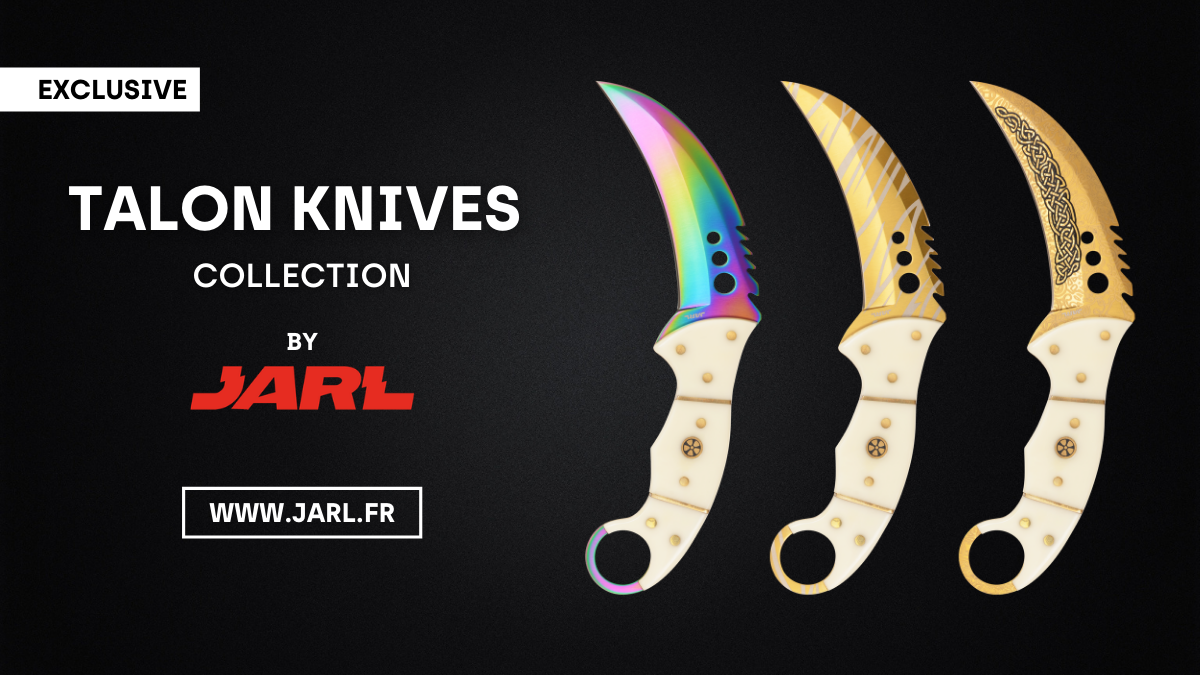 Nos copains du site JARL.gg ont lancé cette semaine tout une salve de réductions sur l'ensemble de leurs produits. De nombreuses répliques de couteaux CS:GO sont par exemple proposés, tout comme la fameuse peluche du « Chicken C4 » qui devrait ravir les amateurs de tous âges du FPS de Valve. Une nouvelle collection de couteaux Talon est d'ailleurs récemment sortie, avec trois skins disponibles.