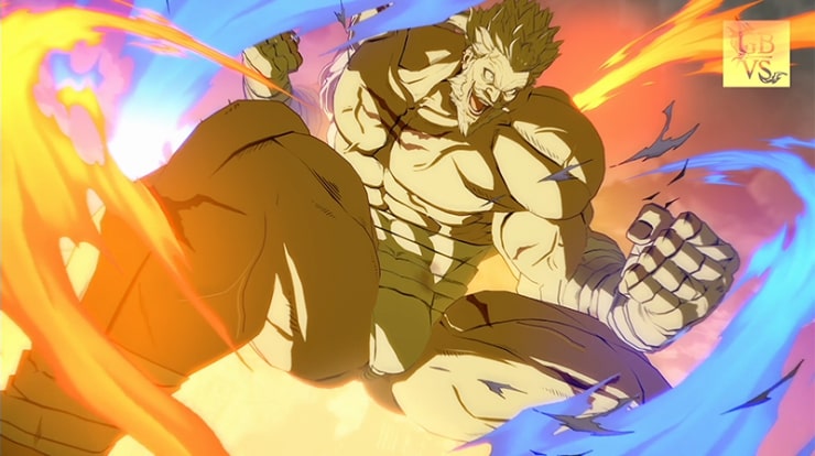 Il y a encore moins d’informations disponibles à l’heure actuelle sur Soriz que sur Djeeta, mais son gameplay est pour le moins original. Il ne possède ni projectiles ni invincibilité sur son anti-air, ce qui le force à rester au contact. Il possède une posture unique appelée Muzzled Fury, lui permettant d’absorber tout ce qui n’est pas une prise, un Skybound Art, ou Super Skybound Art. La durée de cette posture peut être augmentée en maintenant la touche enfoncée, réduisant ainsi les dégâts encaissés par Soriz. Elle lui donne accès aux Reactive Muscles, une contre attaque à courte de portée, qui fait gagner énormément de barres si elle touche. Son Super Skybound Art appelé Macho Ultimatum lui permet de se déshabiller, lui conférant des bonus sur la plupart de ses coups, tout en améliorant sa défense en fonction de la quantité de dégâts absorbés en Muzzled Fury. Durant l’activation de ce Super Skybound Art, il peut aussi utiliser un autre Super Skybound Art : the Way of Fundoshi Fist à aucun coût. Macho Ultimatum dure jusqu’à la fin du round. Soriz semble donc être un personnage high risk/high reward, avec cependant une bonne défense pour palier à ses faiblesses à longue distance.