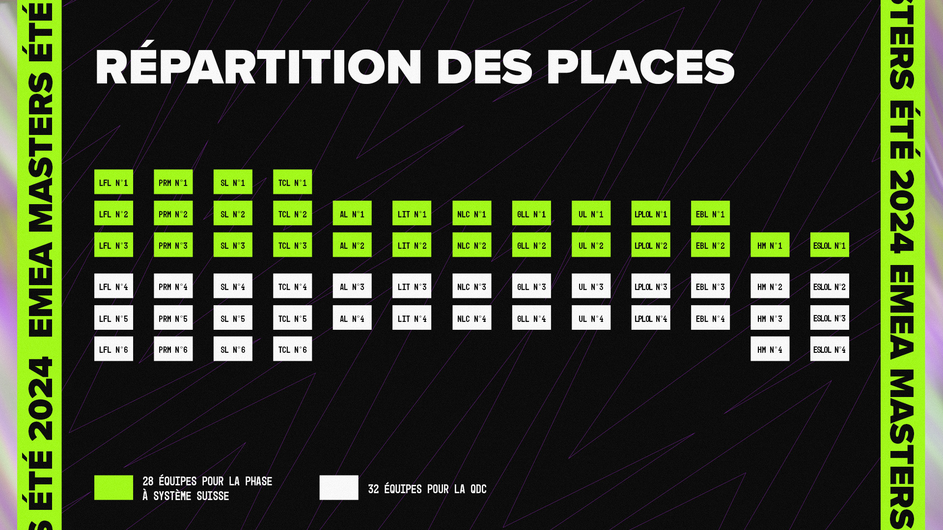 Voici la répartition du nombre d'équipes qui seront invitées dans chaque ligue pour l'EMEA Masters du Summer Split :