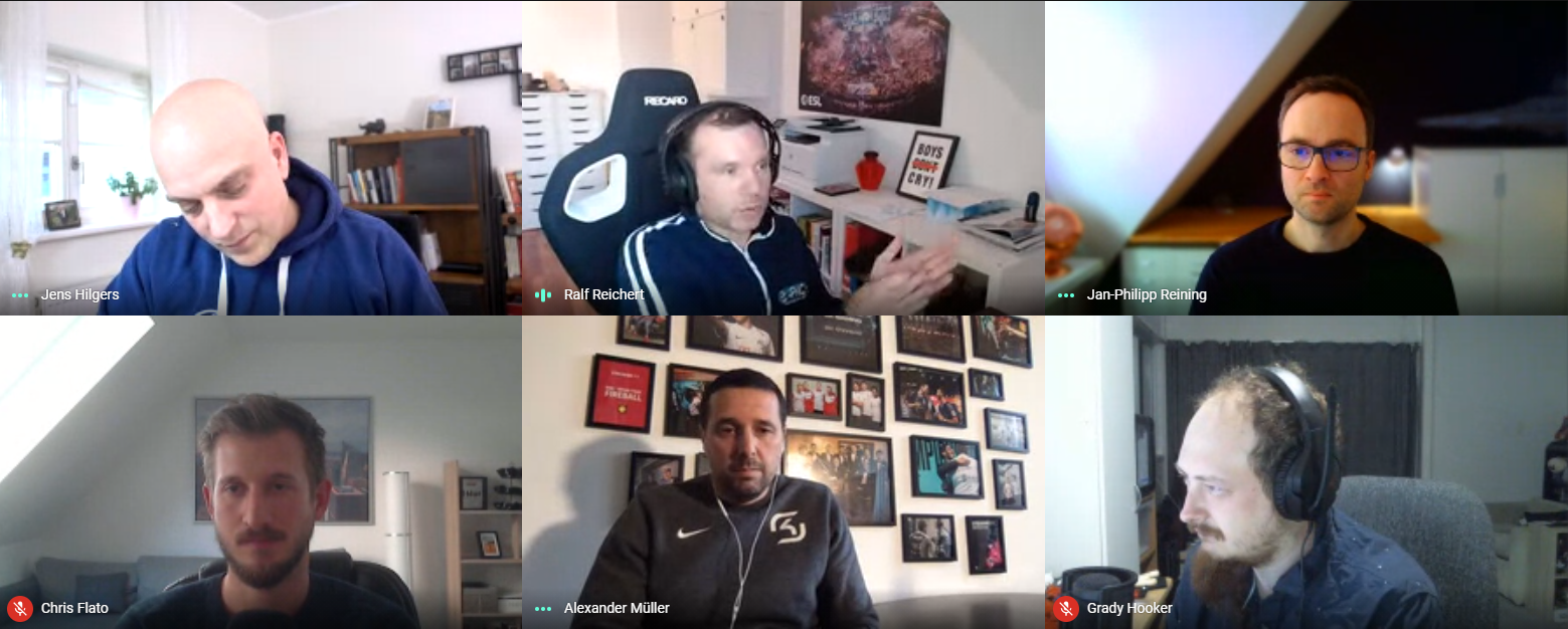 Étaient présents pour répondre, Ralf Reichert (PDG de SK Gaming et co-fondateur d'ESL), Jan-Philipp Reining ( Développeur d'infrastructure gaming et co-fondateur d'ESL) ainsi que Jens Hilgers (fondateur du groupe d'investissement BITKRAFT, co-fondateur de G2 Esports ainsi que d'ESL et gamers.de qu'il a revendu en 1999). Alex Muller s'est aussi largement exprimé avec ses trois compères.