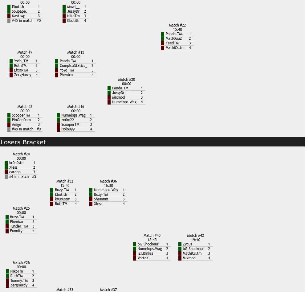 13h30 : round 2 winner bracket & round 1 loser bracket