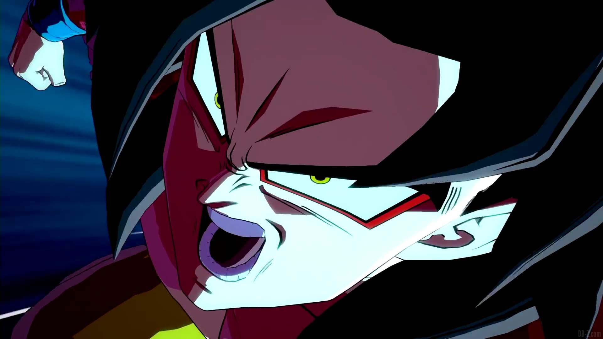Les deux couleurs principales de Goku GT titilleront la nostalgie des fans, l’une étant son kimono de GT et l’autre le kimono de son enfance (il y aura ensuite les déclinaisons de couleurs propres à tous les personnages). Contrairement aux premiers leaks dont nous vous avions parlé, Son Goku pourra bien atteindre le Super Sayan 4 lors d’un de ses ultimes. Le Nyoi-Bo présent sur l’image n’est pas là uniquement pour raviver la nostalgie mais trouve son utilité dans la compensation du manque d’allonge de Goku GT. Dans un souci d’équilibrage, il n’a pas de hurtbox et ne détruit pas les projectiles envoyés par son adversaire.