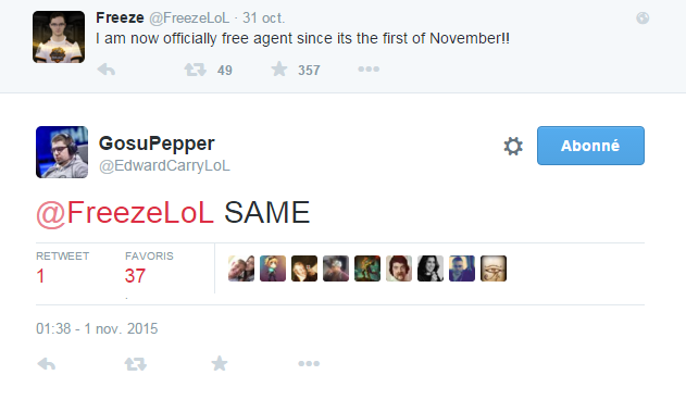 Gosu Pepper avait répondu "pareil" au tweet de Freeze, ce dernier mentionnant son nouveau statut de joueur libre. Et pour aller encore plus loin dans les spéculations, Edward a même supprimé dans sa biographie sur twitter, la partie qui fait mention de son appartenance à Gambit Gaming.