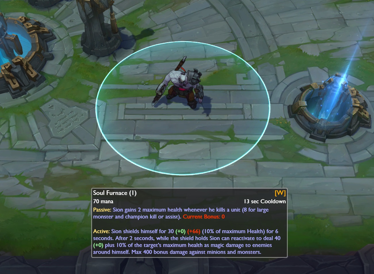 Passive : : les PV max de Sion augmentent à chaque fois qu'il tue une unité.