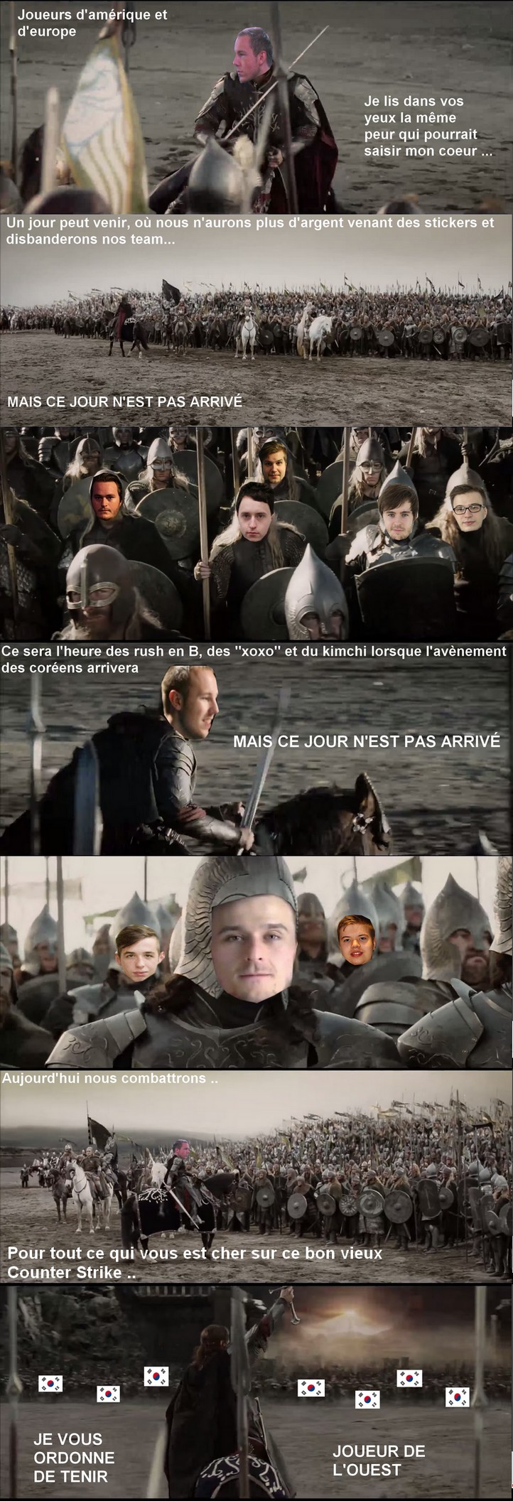 La menace est à nos portes. En ce milieu de janvier, une horrible annonce est faite : les coréens arrivent sur CS:GO. Nous sommes en danger. La Corée, peuple assoiffé de sang et de dollars sur les jeux de compétition électronique, mondialement reconnu pour avoir brisé la concurrence à plusieurs reprises sur des jeux comme Starcraft ou encore League of Legends, a décidé de jeter son dévolu sur Counter Strike : Global Offensive. Ce jeu, fleuron de l'esport occidental pendant des temps immémoriaux doit désormais faire face à la menace de l'Est. Mais rien n'est perdu : la résistance S’organise, et nos awp sont prêts.
