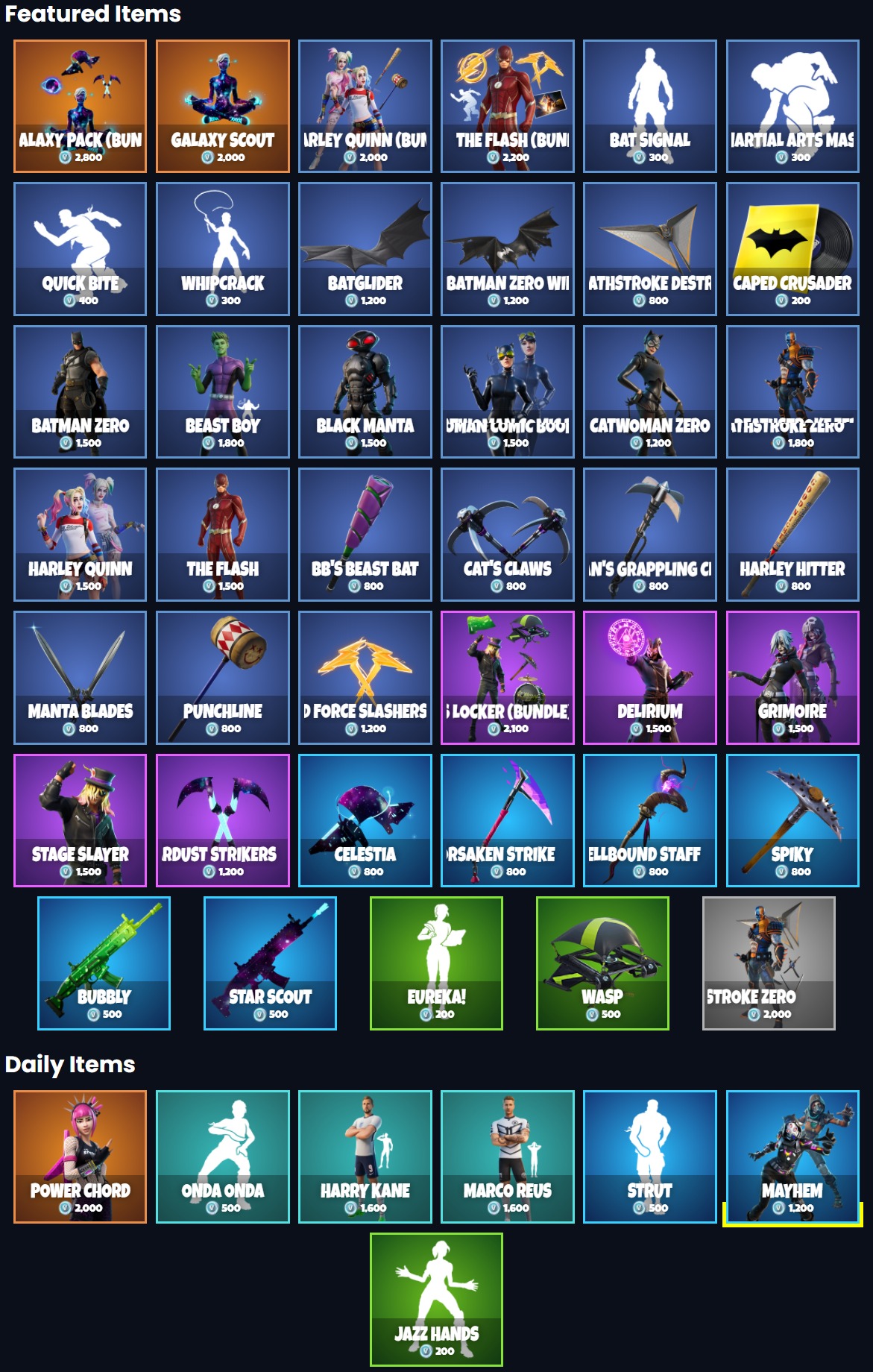 La boutique Fortnite du jour