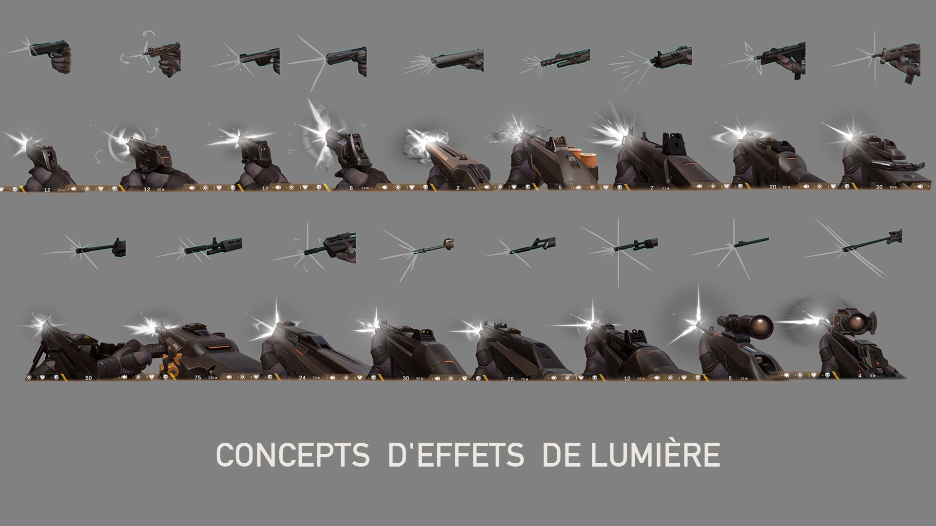 L'origine de nos armes peut être identifiée. Nous avons évité de créer des « factions » qui auraient eu des langages conceptuels différents. Nous avons décidé très tôt de ne pas opposer « armes A » et « armes B » dans VALORANT.
