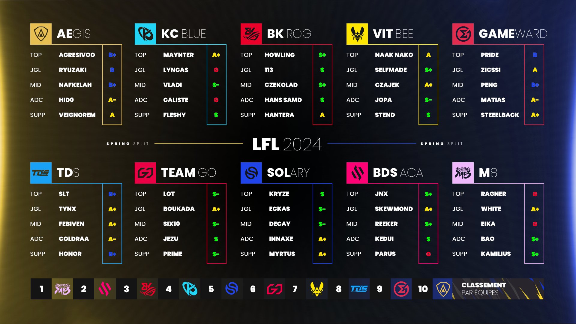 - Lien pratique : le suivi complet de la LFL Spring Split saison 2024