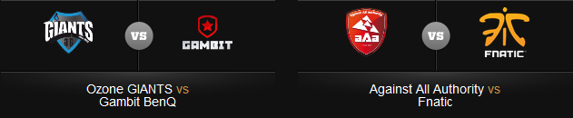 15h35 : La partie commence par une bonne avance pour les Gambit Gaming, montrant au départ une bonne performance, mais plus le match avance et plus les Giants prennent des kills ainsi que des tours, poussant les russes jusque dans leur base, même avec un Ace fait par eux à la fin de la partie ne leur suffira pas à remonter la pente et les Giants remportent une victoire contre toute attente.