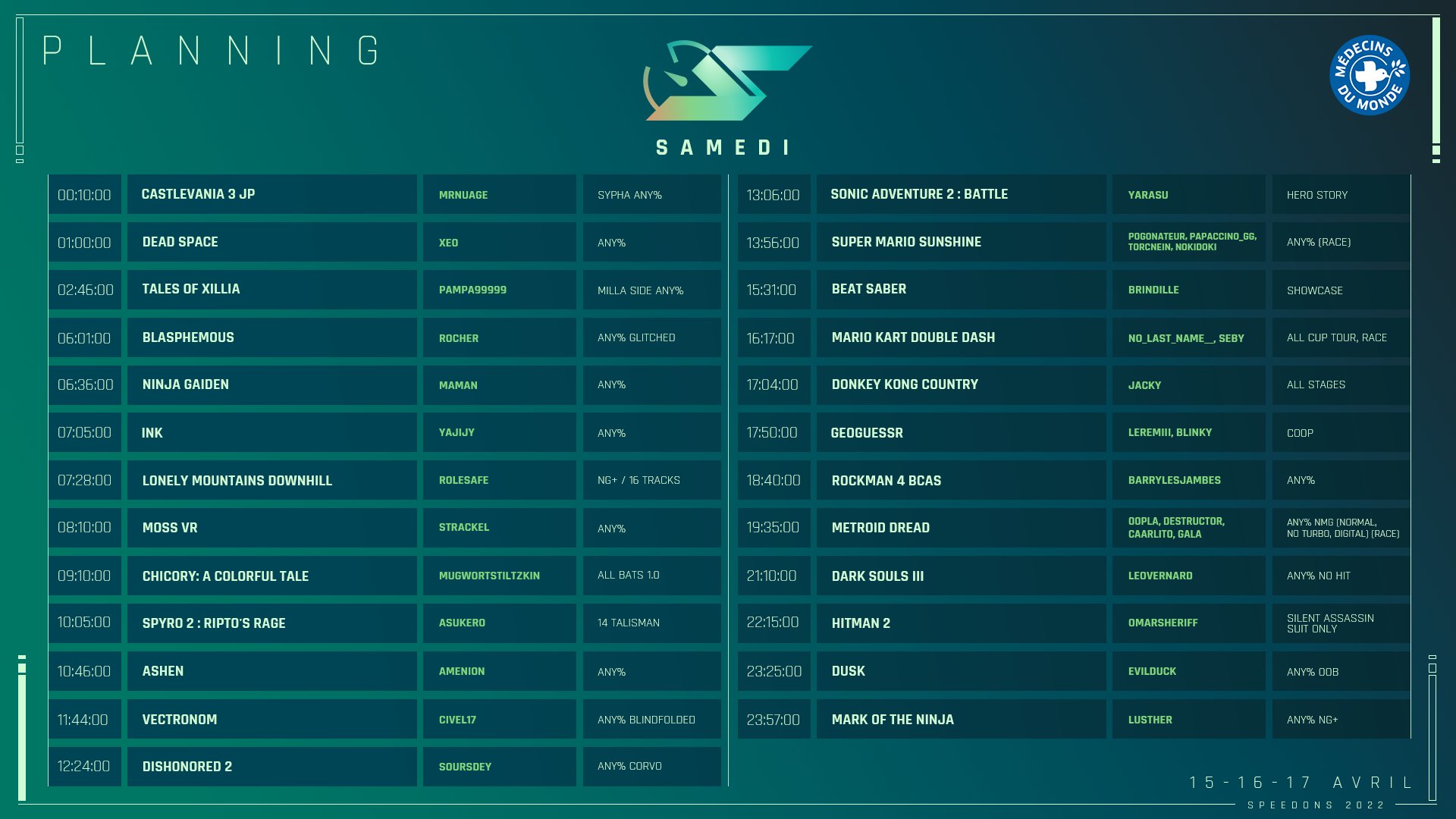 Le SpeeDons, un marathon de speedrun organisé par mistermv au profit de Médecins Du Monde, a lieu ce week-end, du 15 au 17 avril, au Palais des Congrès.