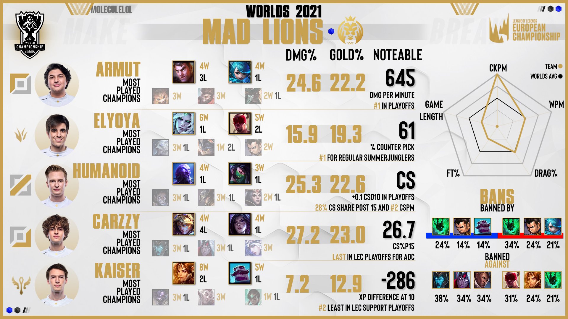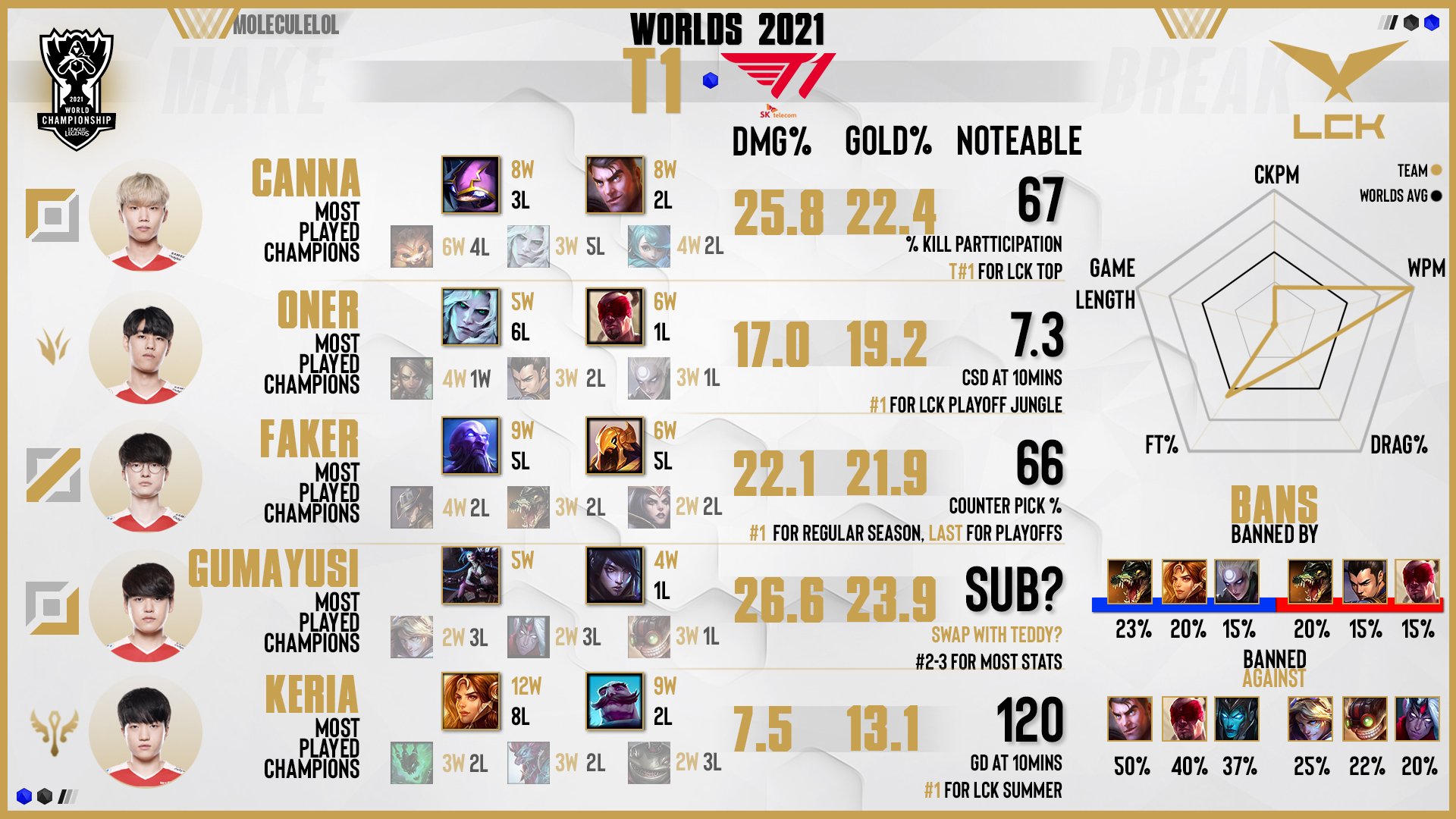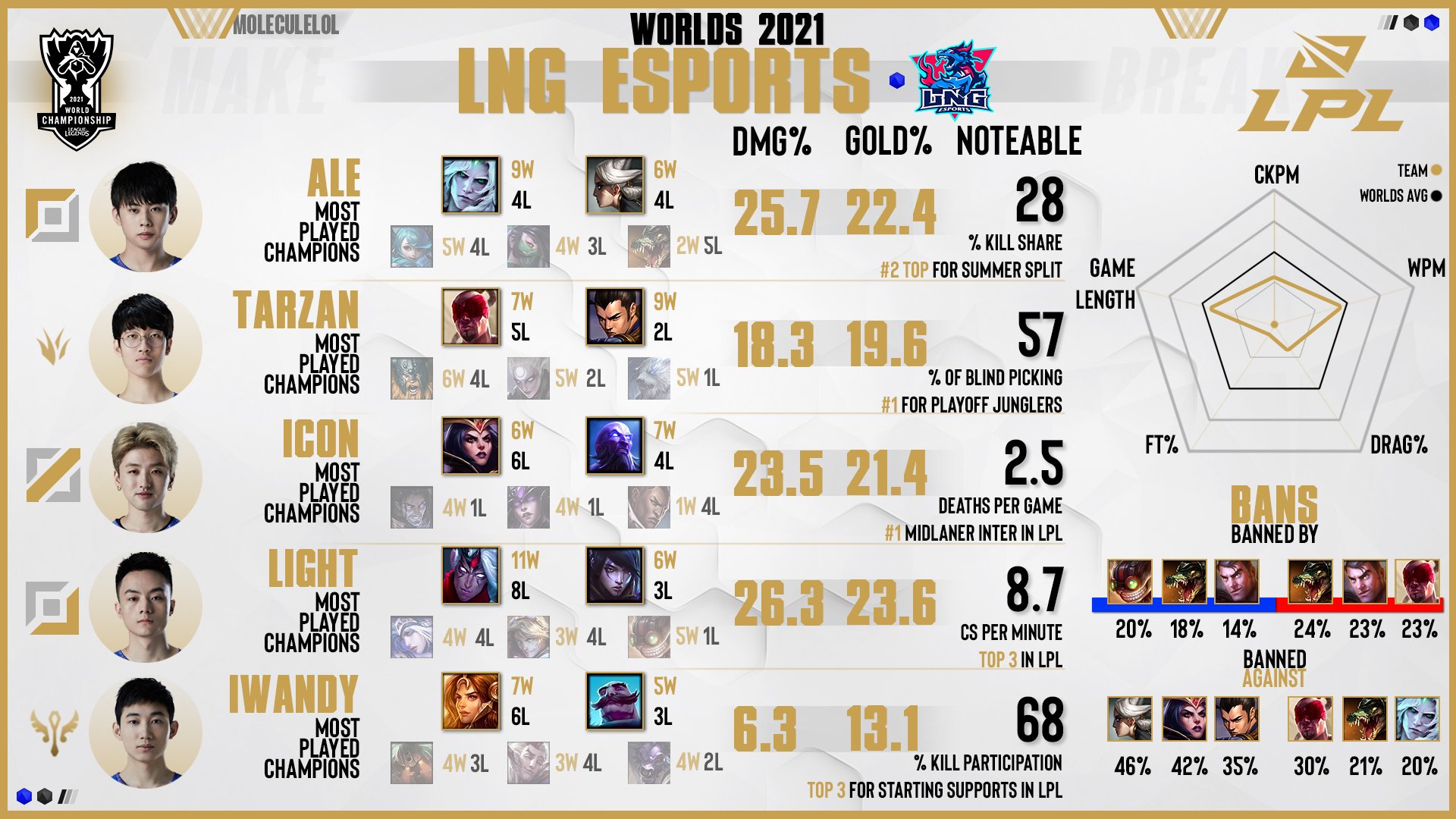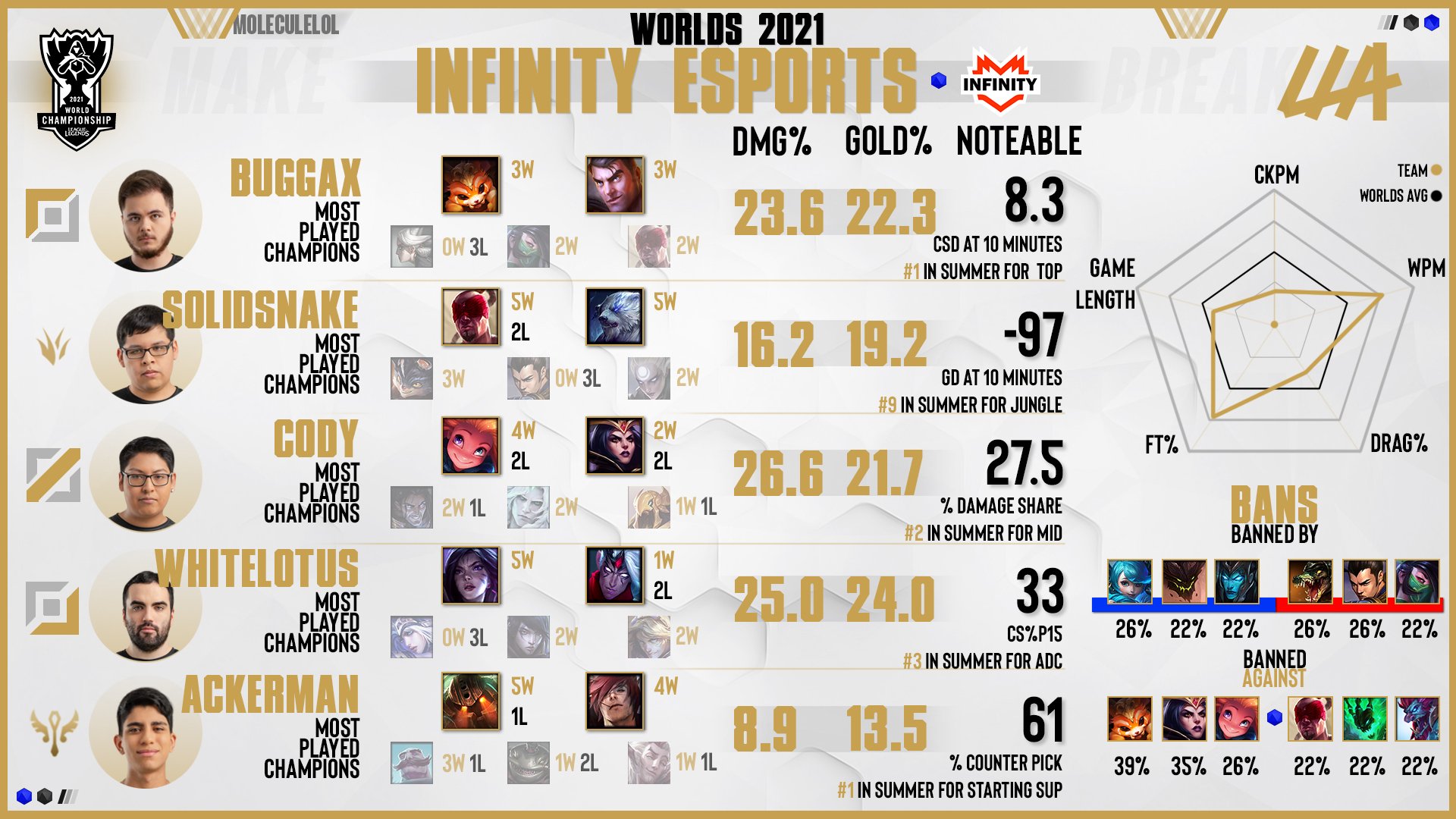 Retrouvez, sous forme d'une infographie, divers informations sur l'ensemble des 22 équipes qualifiées pour les Worlds 2021 de League of Legends.