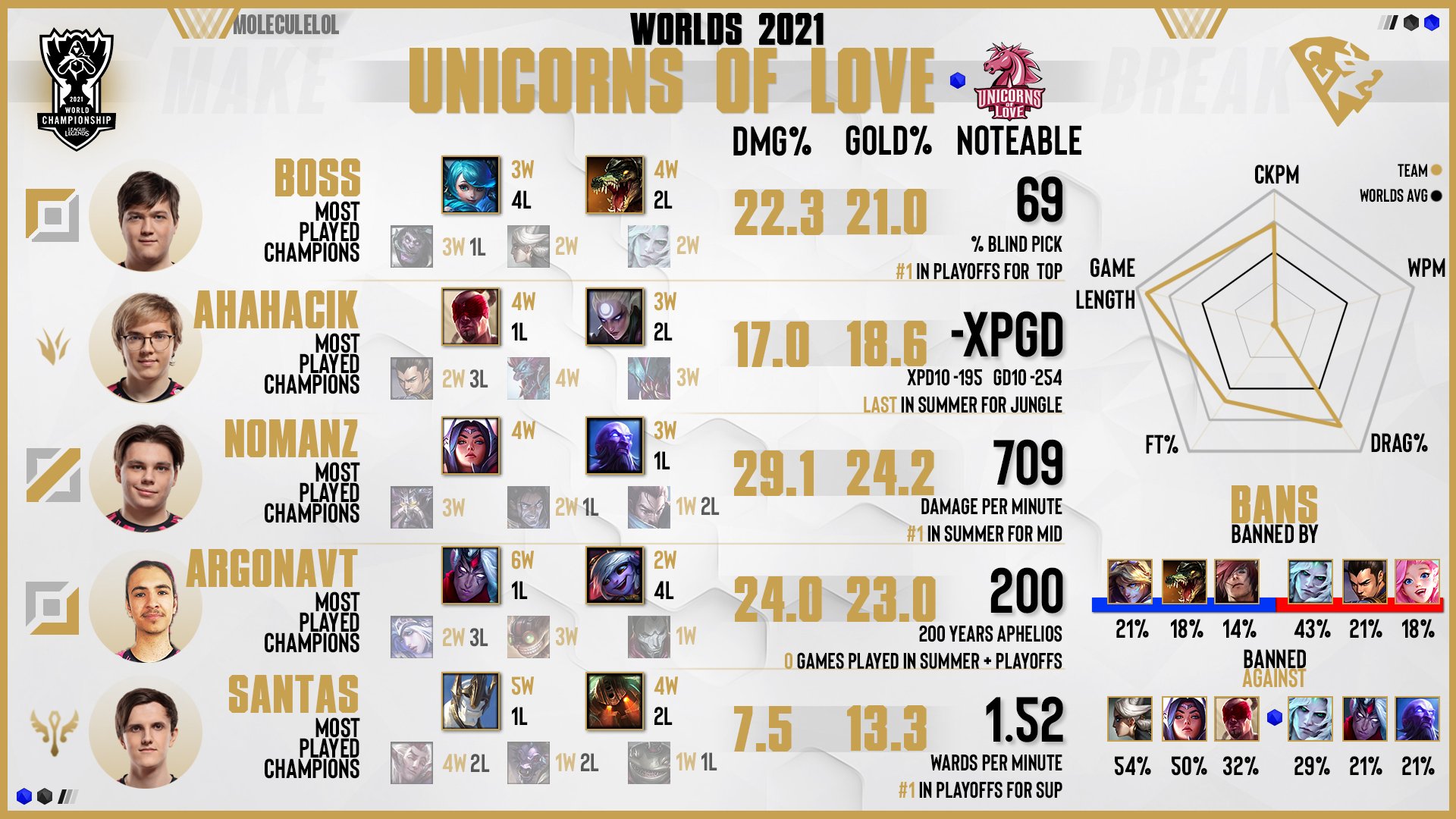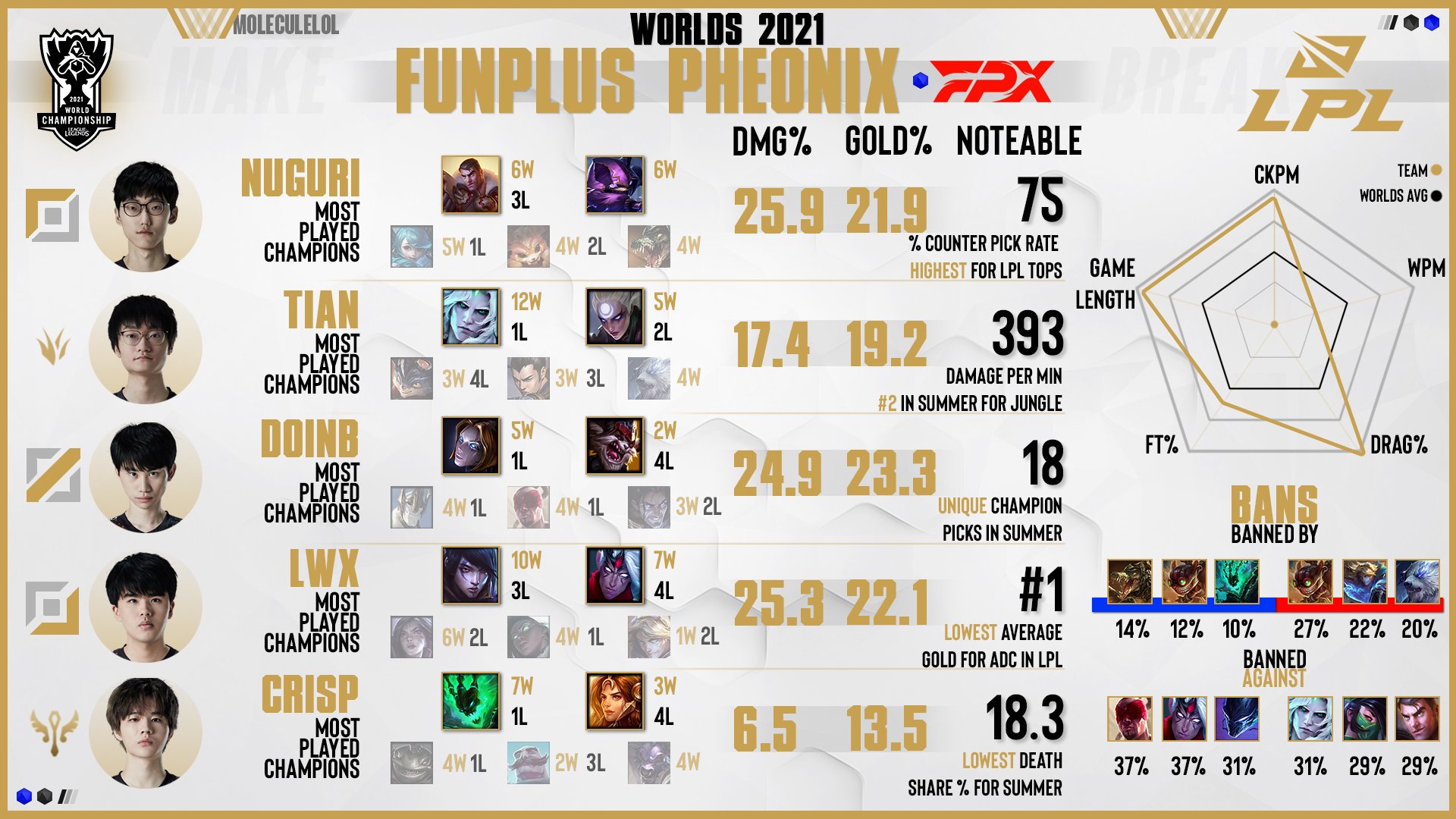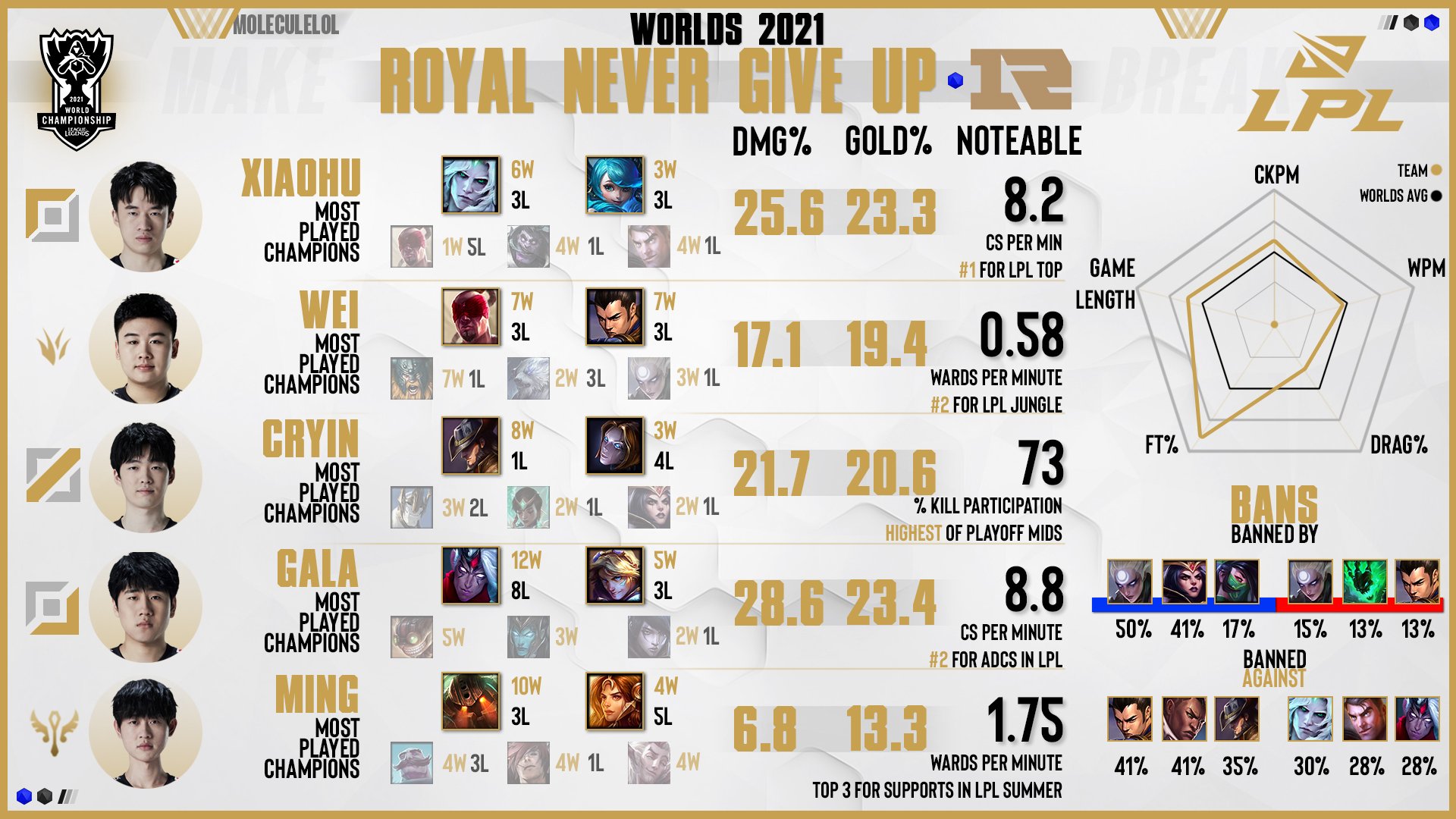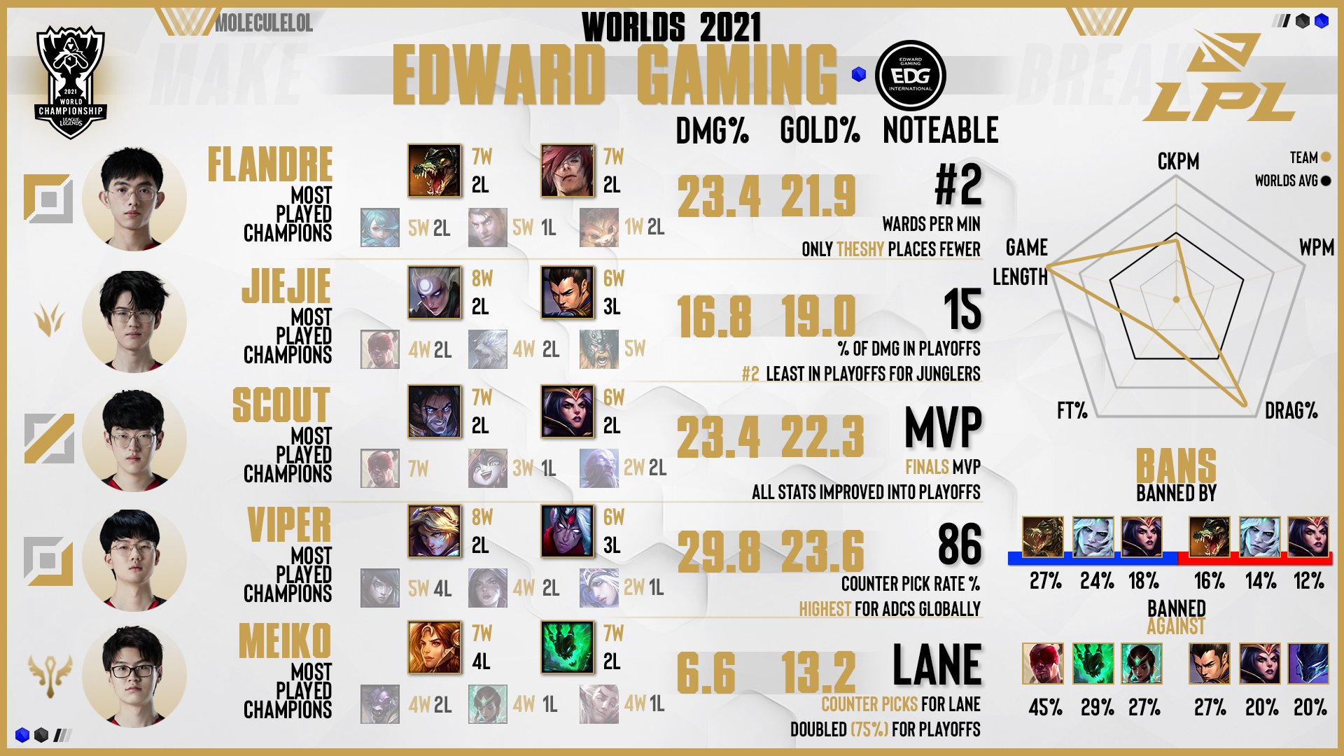 Retrouvez, sous forme d'une infographie, divers informations sur l'ensemble des 22 équipes qualifiées pour les Worlds 2021 de League of Legends.