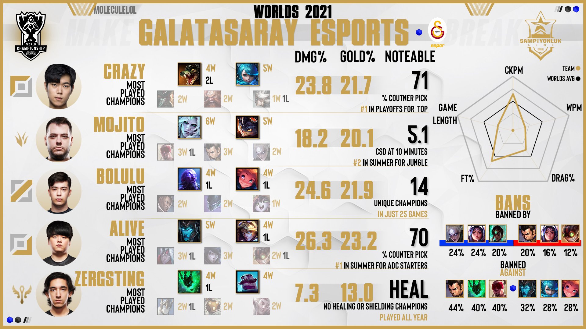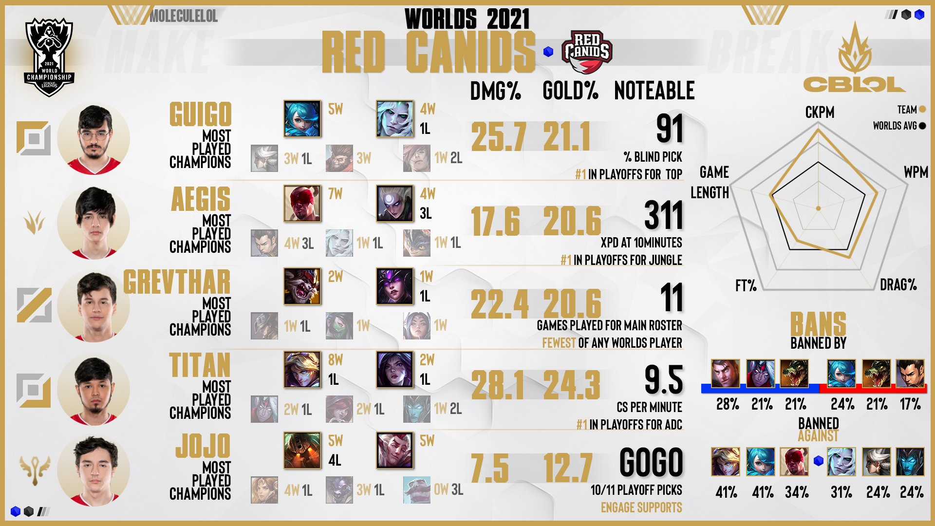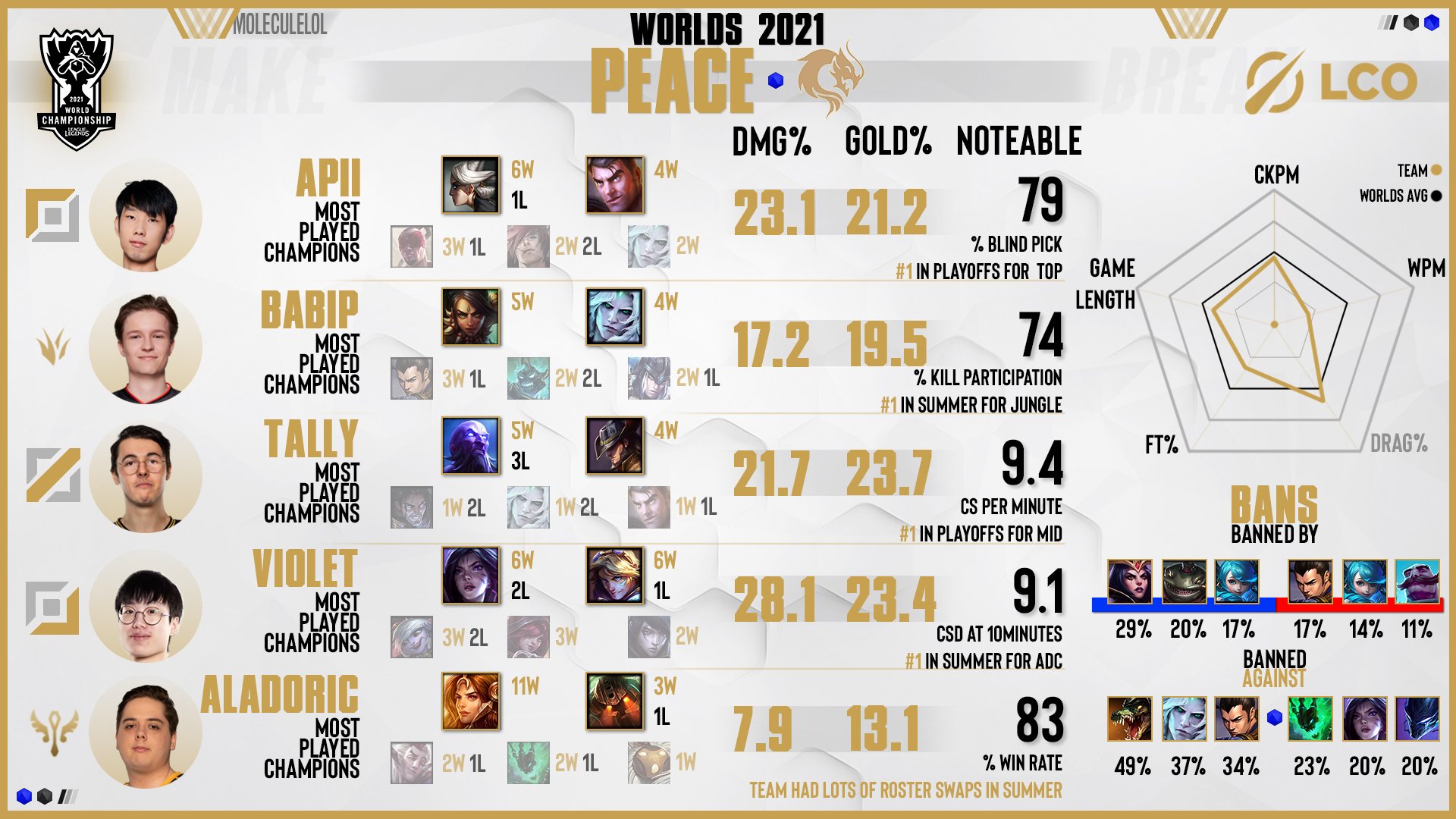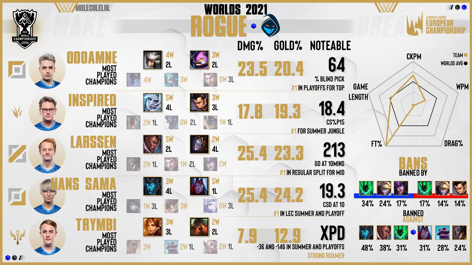 Retrouvez, sous forme d'une infographie, divers informations sur l'ensemble des 22 équipes qualifiées pour les Worlds 2021 de League of Legends.