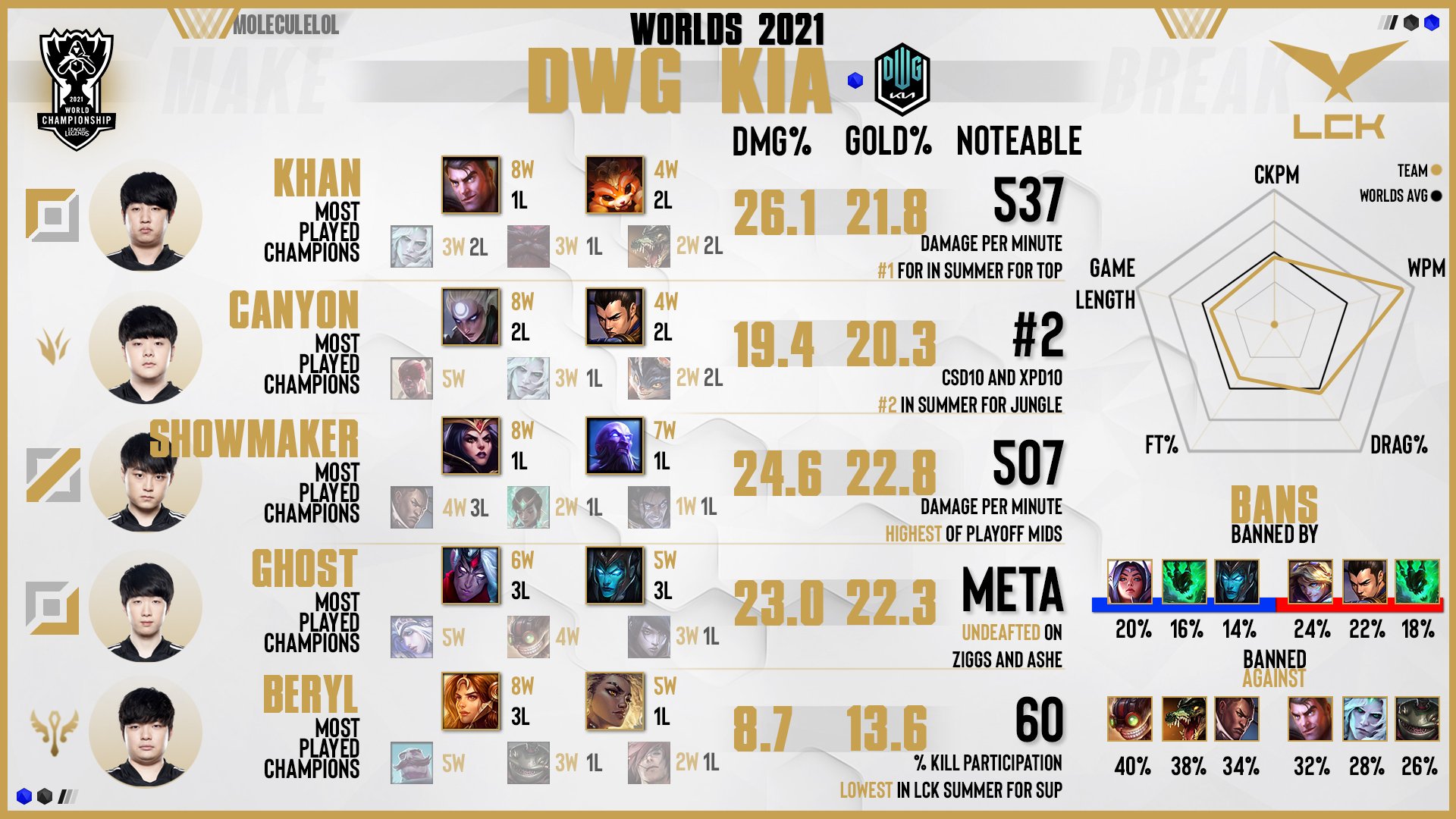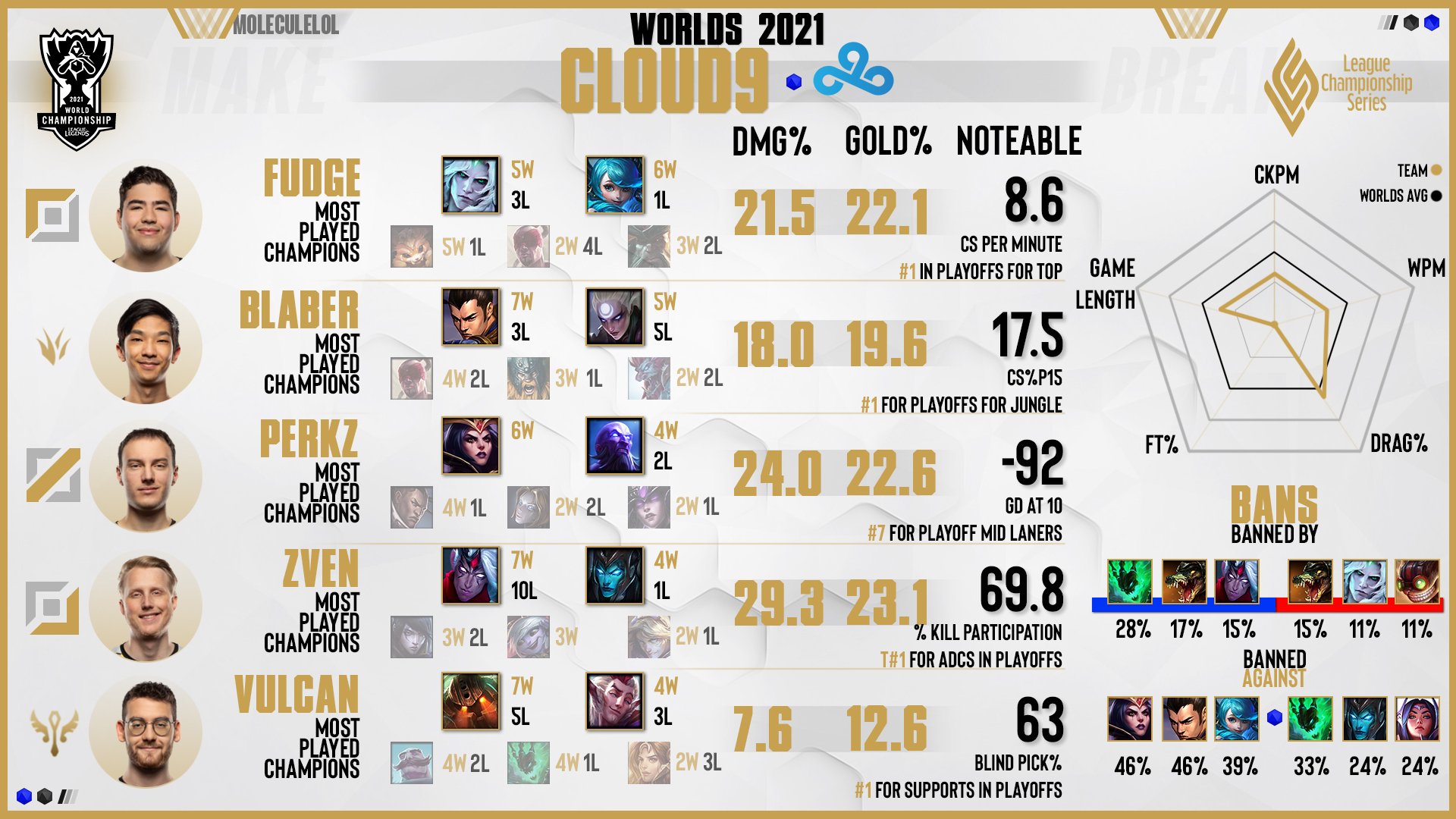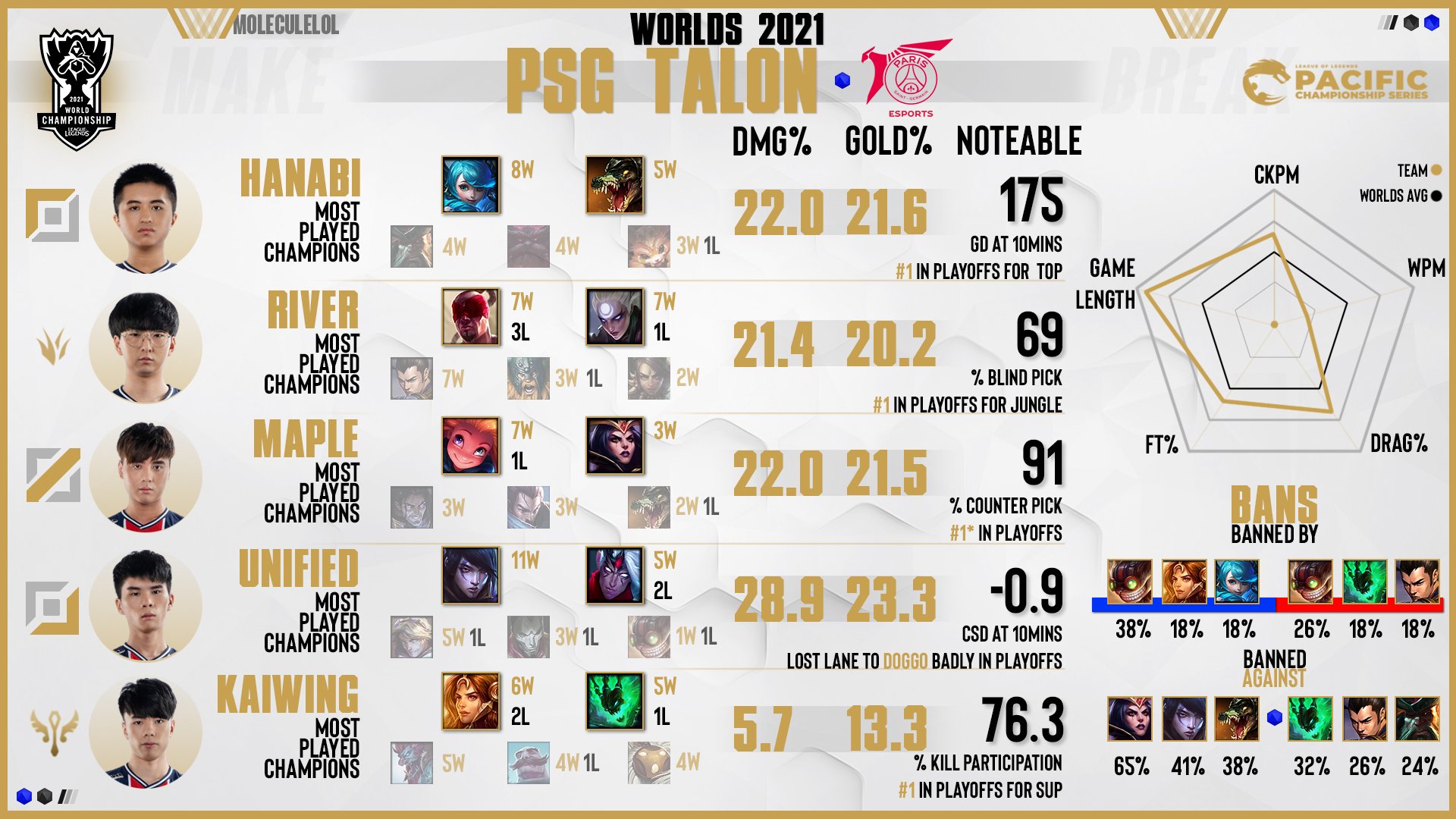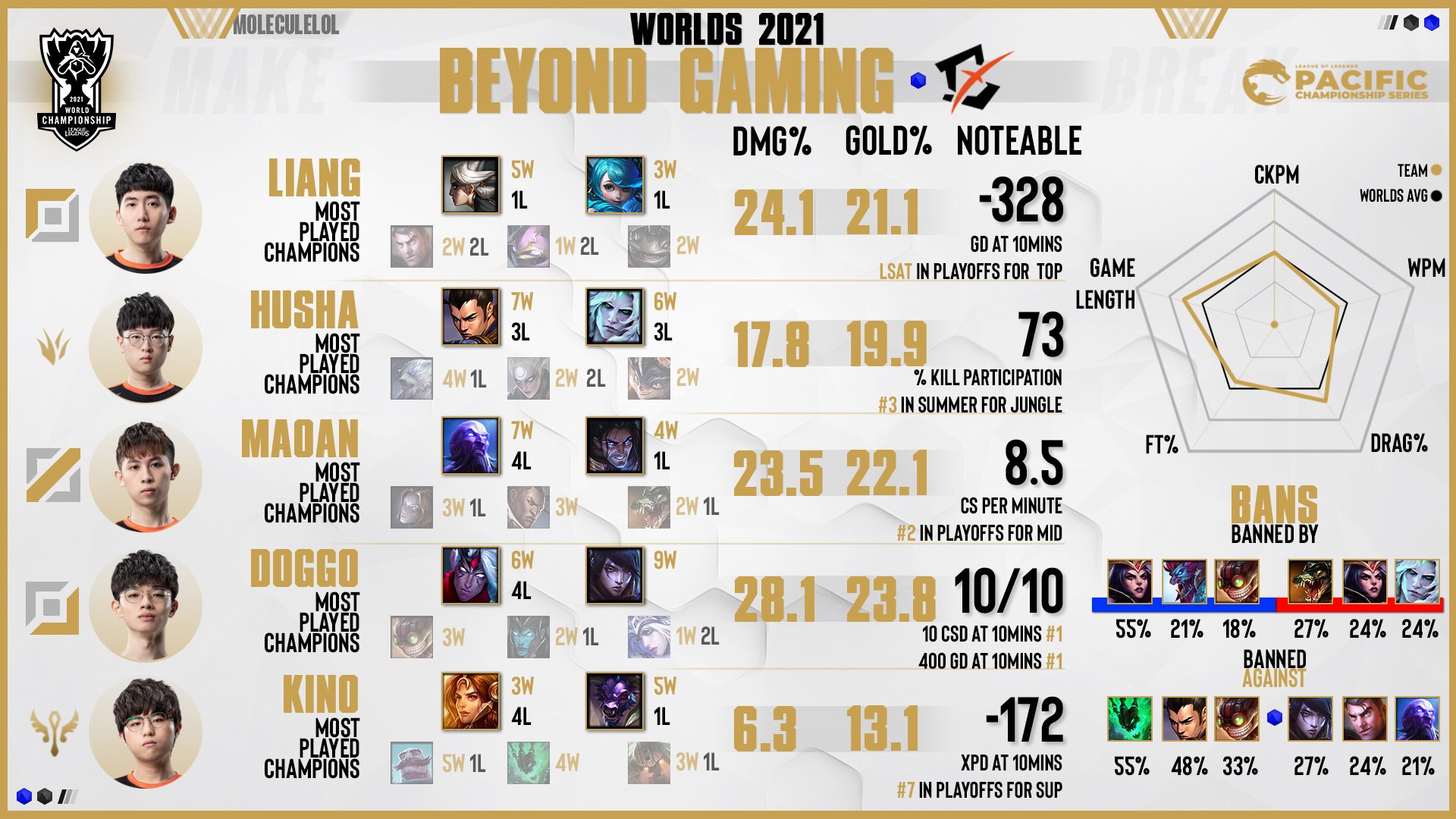 Retrouvez, sous forme d'une infographie, divers informations sur l'ensemble des 22 équipes qualifiées pour les Worlds 2021 de League of Legends.
