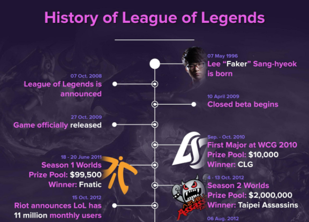 Le site theScore esports vient de mettre en ligne une infographie un peu spéciale sur l'histoire esportive de League of Legends en prenant comme point de départ la naissance du midlaner de la formation coréenne SK Telecom T1 et triple champion du monde, Lee "Faker" Sang-Hyeok.