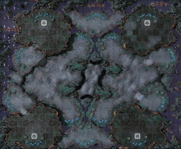 Bien que cette carte aie fait une brève apparition en 2 contre 2 en début de Beta, elle n'est depuis plus utilisée que pour les parties en FFA. Quatre emplacements de départs sont ainsi positionnés à 1h, 5h, 7h et 11h sur de grandes plates-formes surplombant la carte. Chacune de ces bases dispose d'une expansion naturelle surélevée par rapport au centre de la carte à 2h, 4h, 8h et 10h.