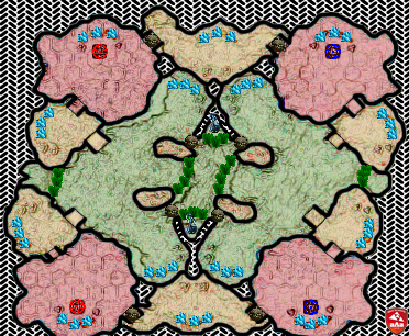 Au final cette carte incite beaucoup les joueurs à gérer en un premier temps les adversaires les plus proches d'eux avant de s'attaquer à l'adversaire le plus éloigné. Le passage au centre de la carte peut en effet rapidement devenir très dangereux si plusieurs armées s'y trouvent en même temps.