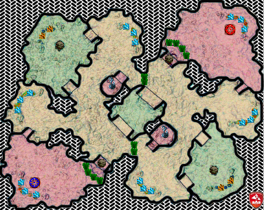 Concernant les accès maintenant, la zone centrale peut être traversée par 3 chemins différents : une cuvette avec deux larges rampes au centre et deux passages étroits au Nord et Sud de la cuvette dont des herbes hautes cachent la visibilité. Deux tours Xel'naga se situent autour de la cuvette sur des petites plates-forme permettant de contrôler le trafic.