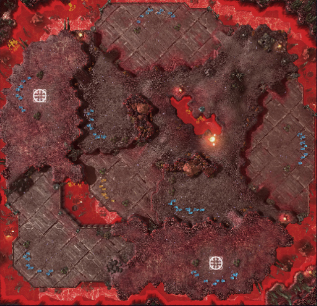 Cette carte est la seule carte 1 contre 1 ajoutée avec le patch de la Beta 9 et elle permet en autre de montrer les effets de lave possibles avec l'éditeur.