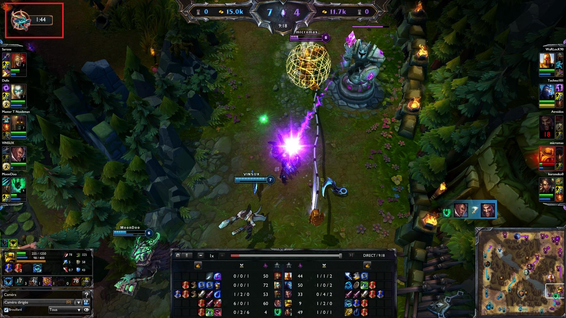 - Des comptes à rebours seront affichés en haut à gauche du mode Spectateur pour indiquer quand réapparaîtront le dragon et le baron Nashor.