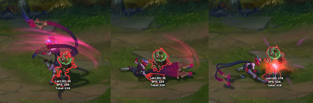 Les dégâts changent de 60/85/110/135/160/185 (+45% AP) (+3% du mana bonus) à 60/90/120/150/180 (+50% AP) (+2% du mana bonus).