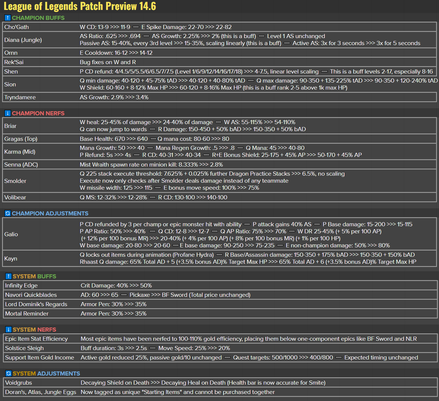 PREVIEW DES FUTURS ÉQUILIBRAGES PBE LOL 14.6
