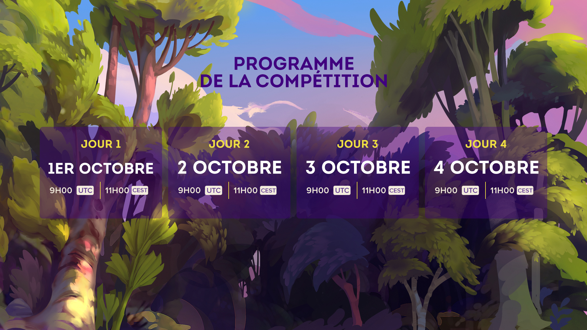 - 4 octobre : Finale - le premier joueur à atteindre 18 points et à gagner une partie remporte le titre de champion !