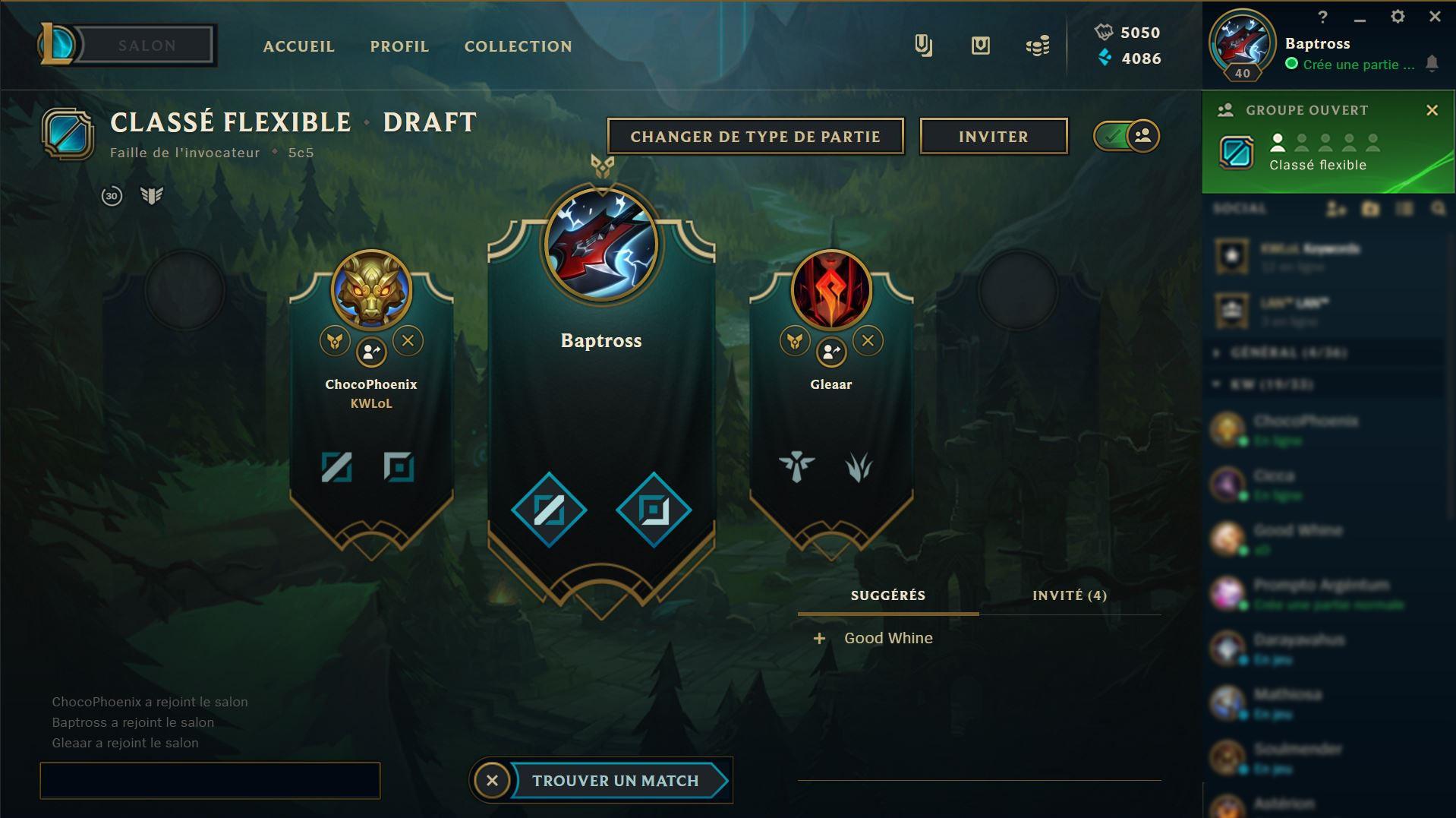 Le jour où il fallait envoyer des invitations et attendre de longues minutes que vos amis les acceptent est révolu ! Choisissez une file et votre groupe ouvert apparaîtra dans la liste d'amis de vos amis. Ils verront le nombre de places restantes et la file sélectionnée. En un seul clic, ils pourront rejoindre votre groupe et leurs amis verront le salon.