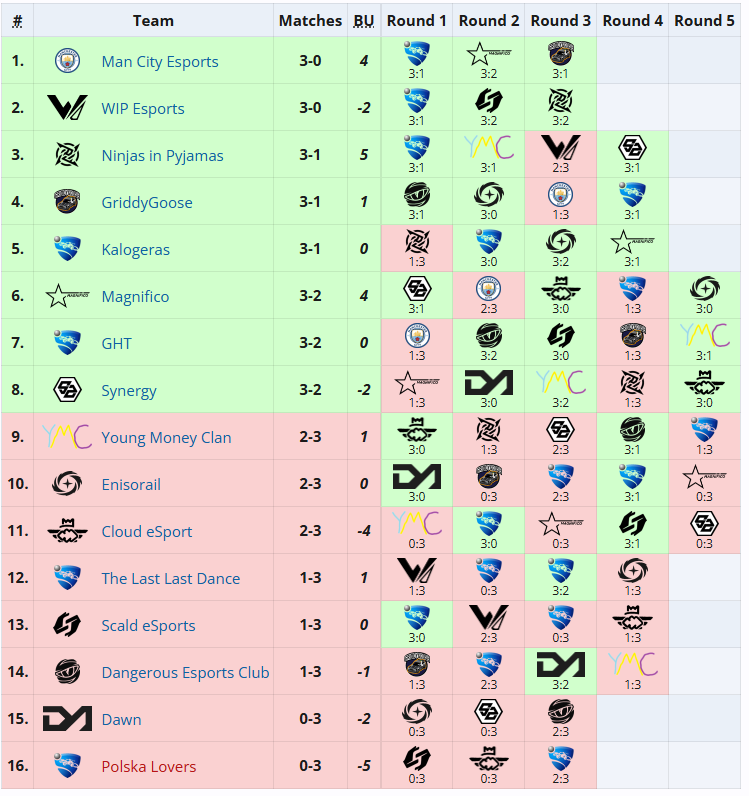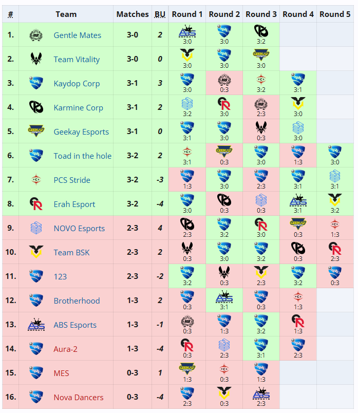 - Dimanche 5 avril : Swiss Stage avec 32 équipes réparties en deux groupes (résultats en bas de la page)