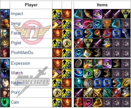 15e minute, les 2 teams entrent en confrontation, celle-citourne à l’avantage des SKT avec 3 kills de pris contre seulement 1 de concédé. Du coup, les SKT profitent de leur supériorité numérique pour sécuriser un drake et prendre un léger avantage dans la game. 20e minute, Nocturne décale au bot et permet à sa duolane de prendre 1 kill supplémentaire et 1 tourelle. On retrouve les SKT pour un hard push au mid car ceux-ci détruisant 2 tourelles. 23e minute, les SKT prennent leur 3e dragon.