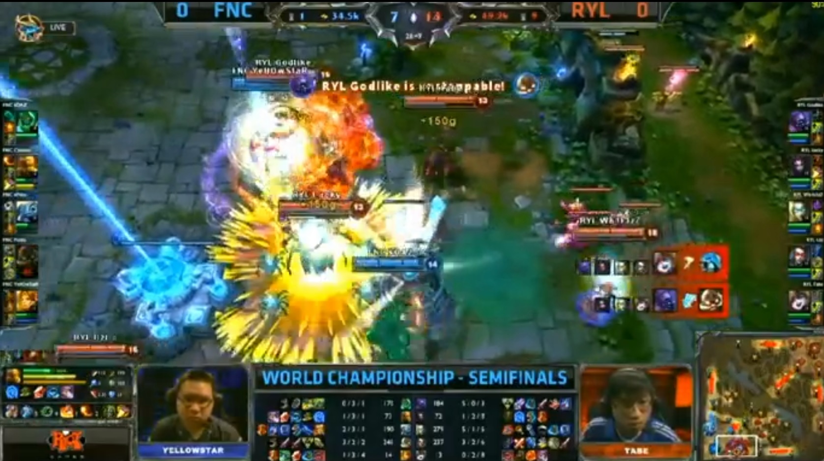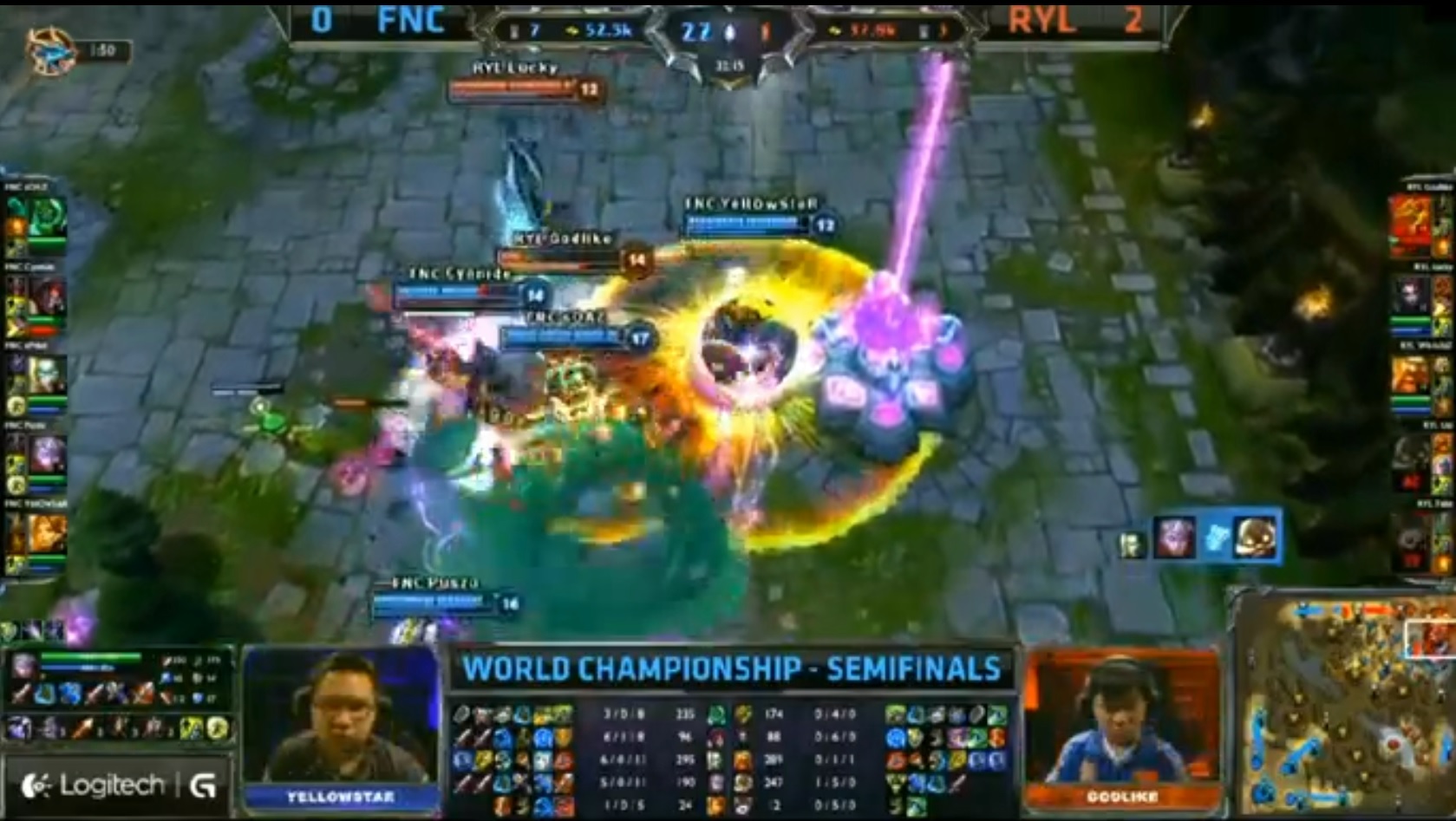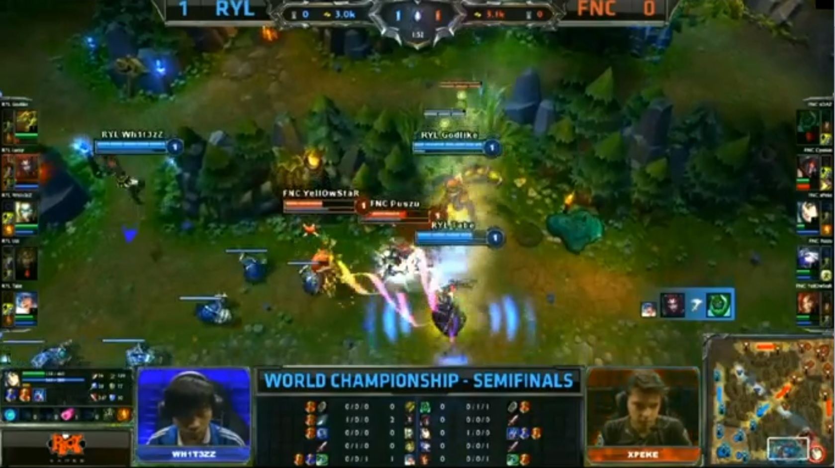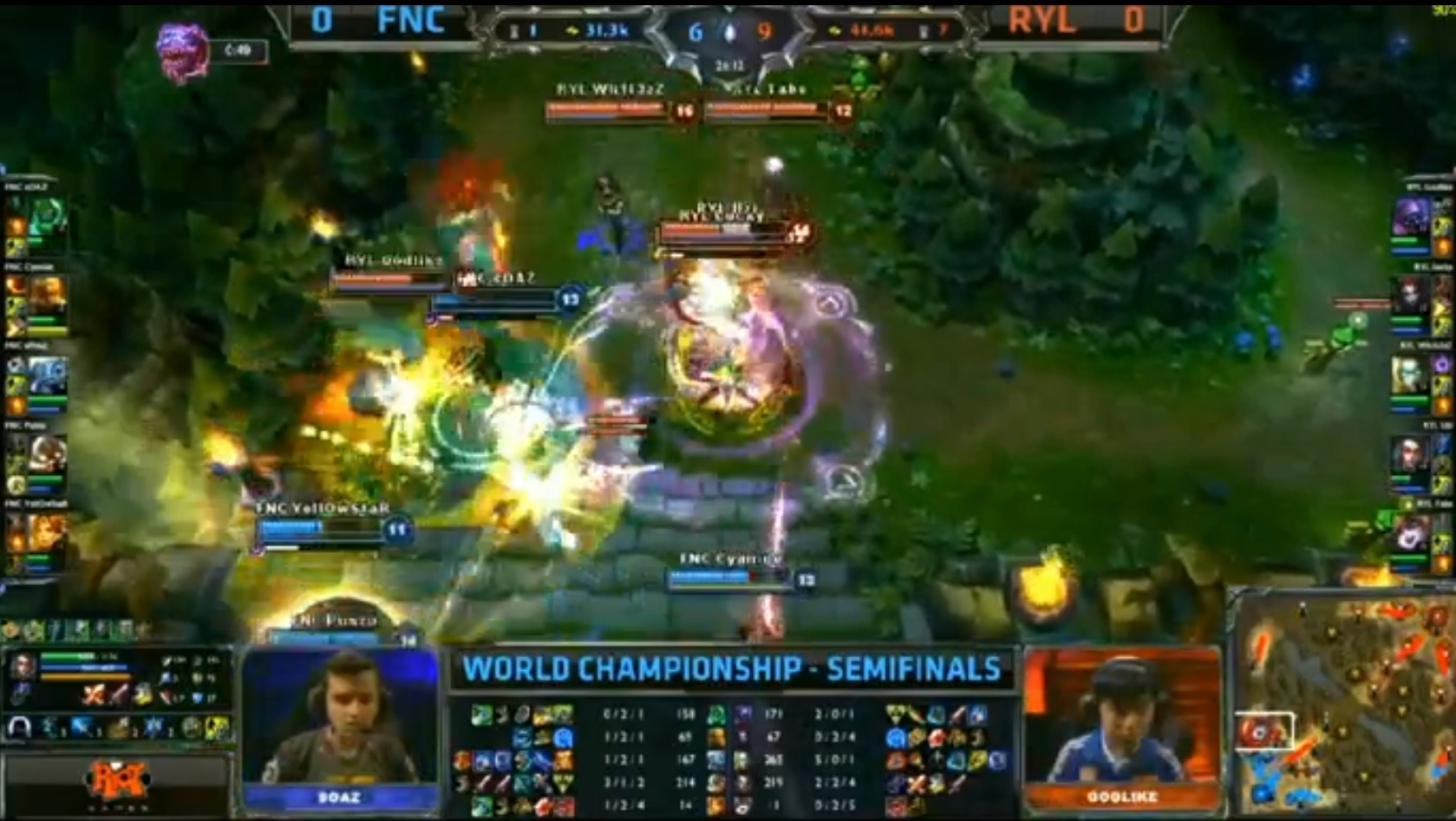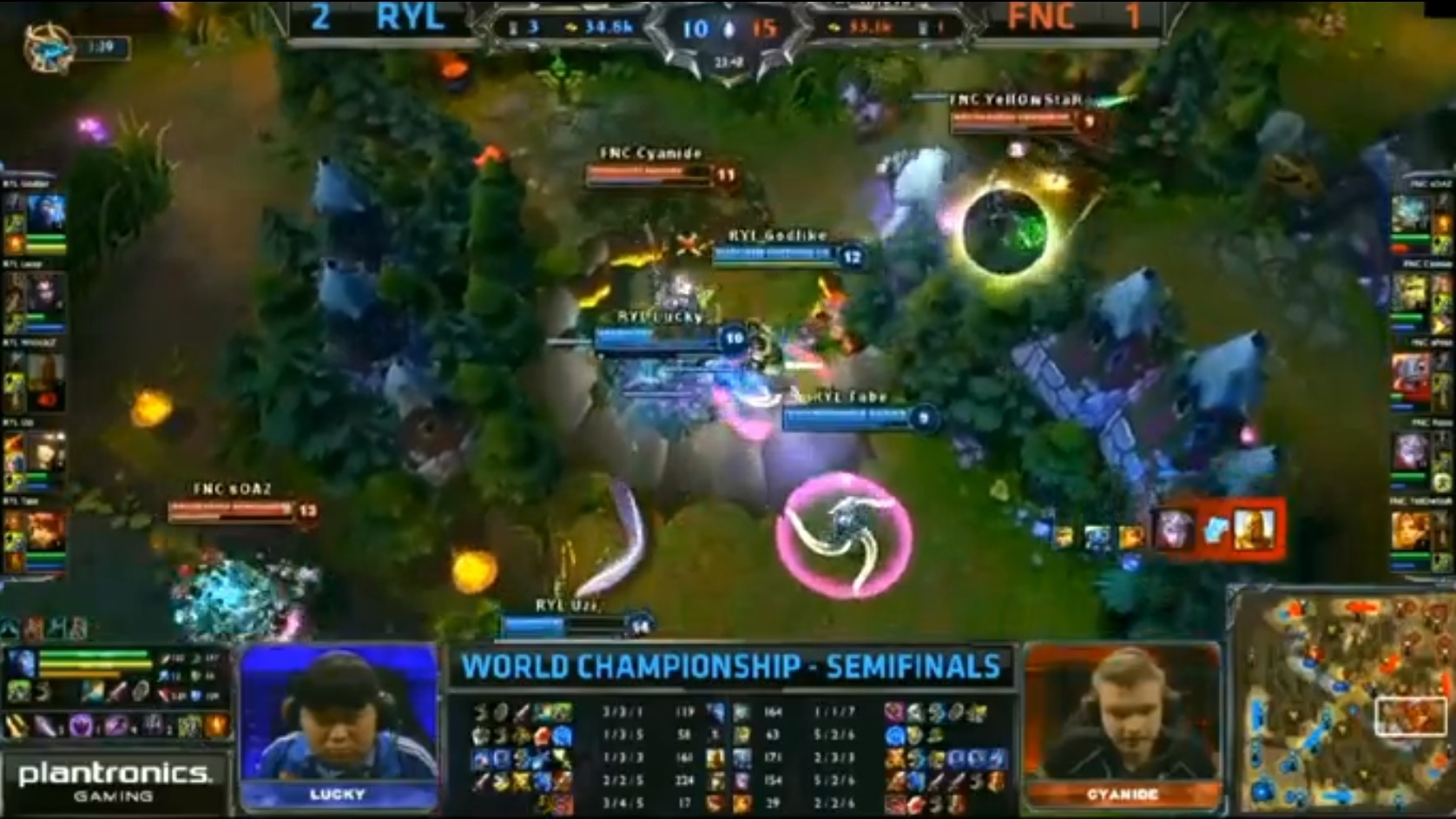 49e minute, les Fnatic réalisent une erreur de focus permettant au Royal club de prendre 4kills. Les RYL détruisent le Nexus et remportent cette demi-finale.