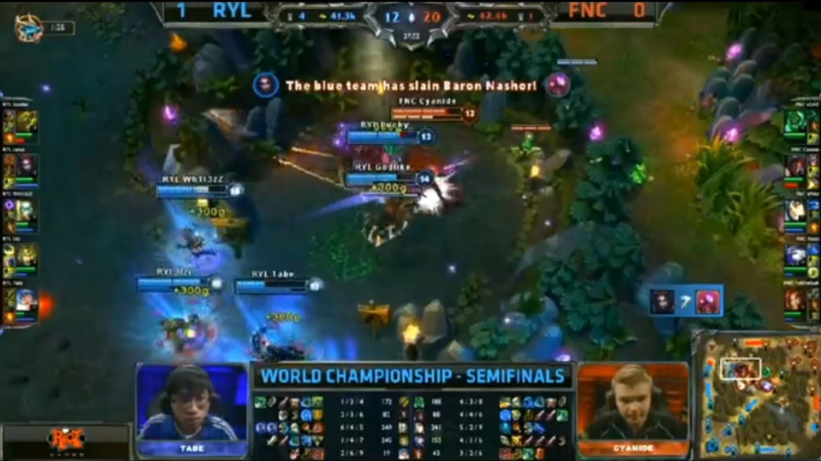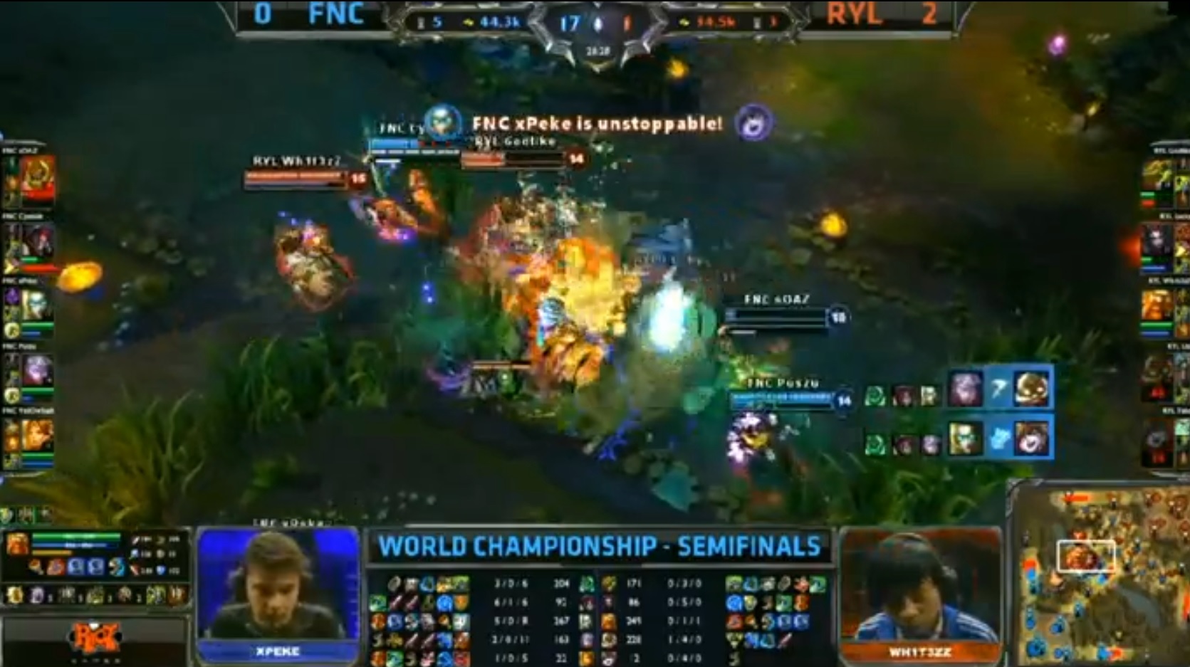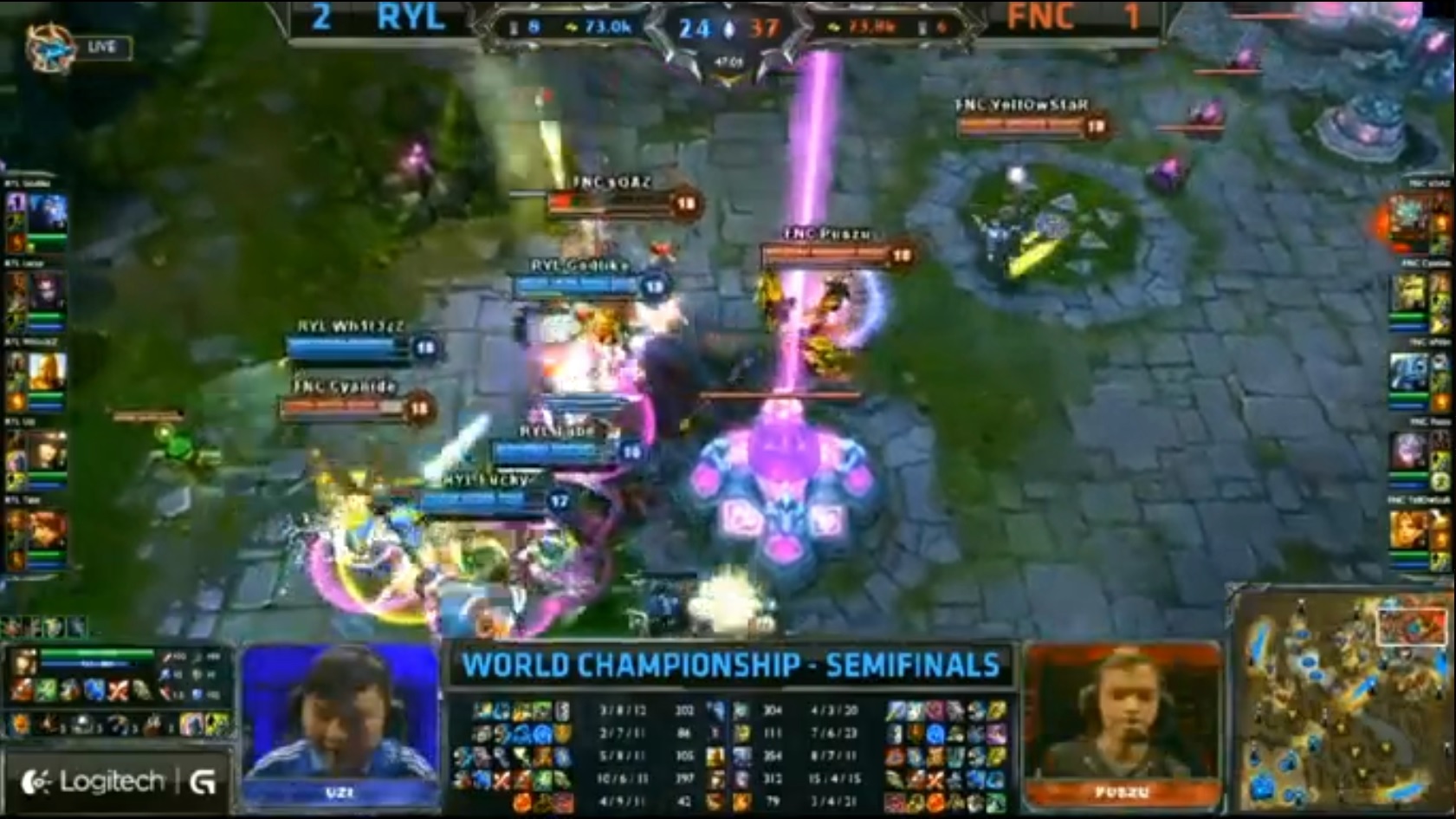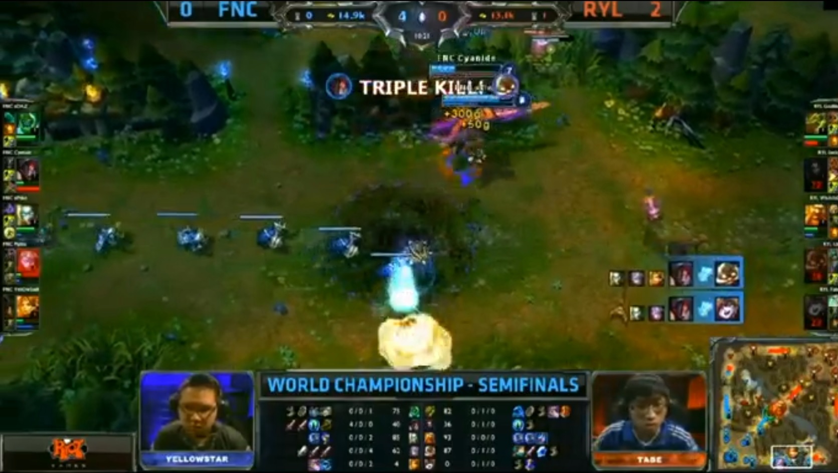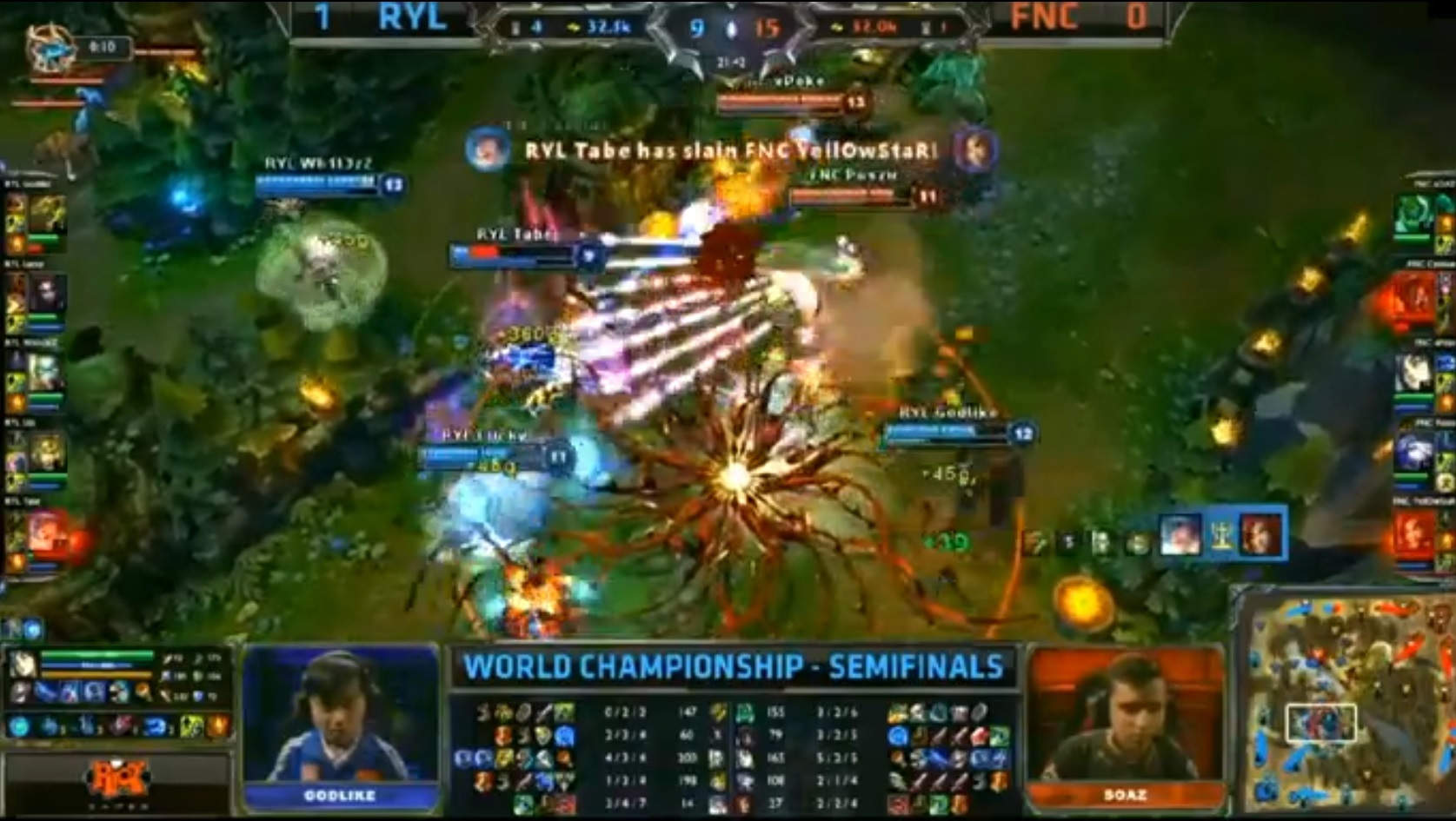 49e minute, les Fnatic réalisent une erreur de focus permettant au Royal club de prendre 4kills. Les RYL détruisent le Nexus et remportent cette demi-finale.