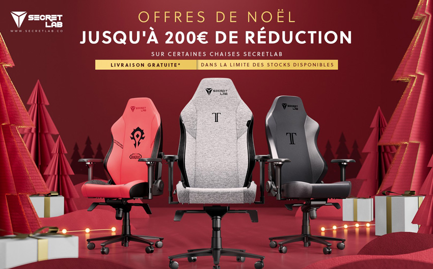 Notre partenaire Secretlab célèbre les fêtes de fin d'année avec éclat, en offrant aux joueuses & joueurs une occasion unique de renouveler leur espace de jeu. En cette période festive, sont proposées des remises sur une gamme sélectionnée de chaises et de bureaux spécialement conçus pour les gamers.