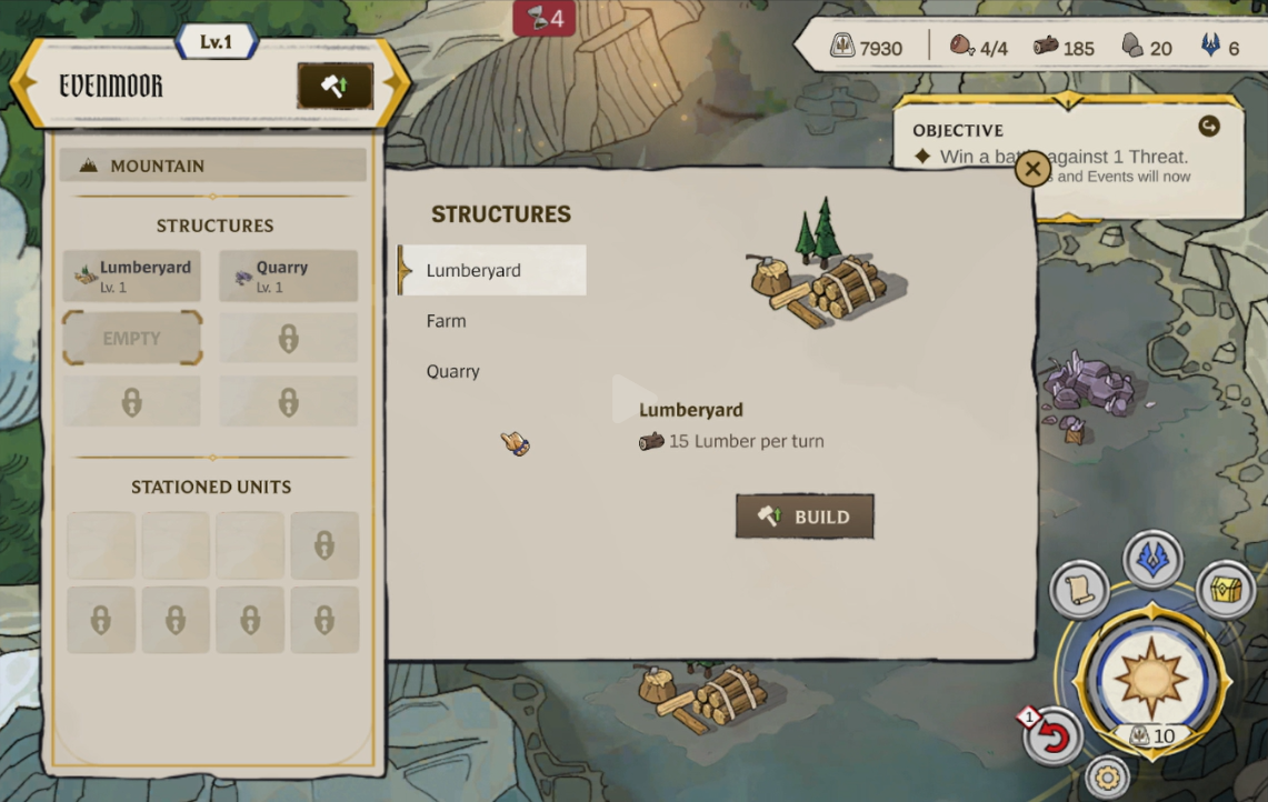Vous devrez étendre votre royaume en sécurisant les lieux adjacents : lorsque vous souhaitez revendiquer un lieu, il vous faudra le protéger de toute menace pesant sur votre peuple. Cliquez sur un territoire ennemi pour obtenir un aperçu des unités adverses, y compris la puissance de leur armée. Si vous pensez être prêt, rassemblez vos forces et préparez-vous au combat !