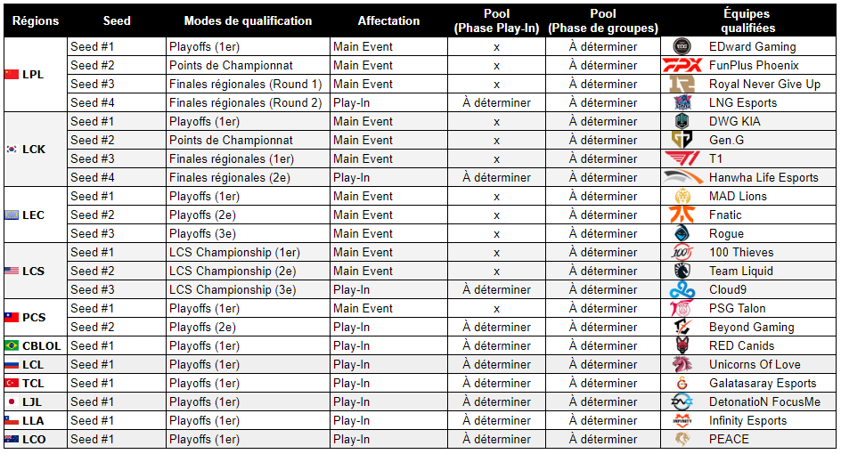 Avec la non-participation des deux équipes VCS, le seed 3 de la ligue LEC récupère le slot et est directement qualifiée pour le Main Event, et ce, sans jouer le Play-In.