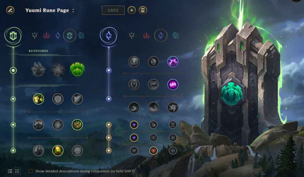 En effet, dans la majorité du temps, Yuumi est jouée avec Aery, alors que le Gardien semble bien mieux convenir à son kit. Il peut être déclenché avec le soin ou avec son bouclier passif, offrant une grande mobilité. Cela lui permet de mieux se mouvoir en teamfight, mais aussi de sauver des alliés en fâcheuse posture. De plus, Revitalisation et Plaque d’os semblent très bien convenir à Yuumi, faisant de Gardien la rune primaire optimale.