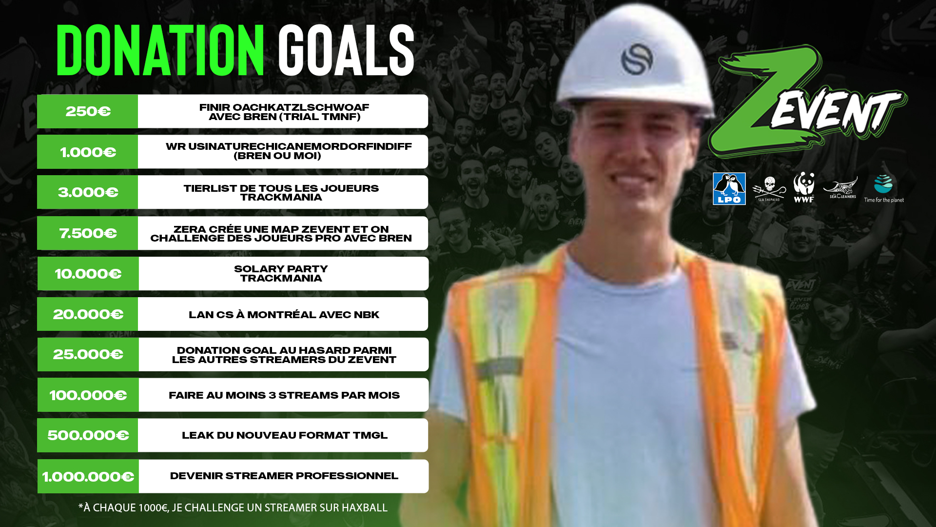 L'événement caritatif organisé par Adrien « ZeratoR » Nougaret et Alexandre « Dach » Dachary revient les 9, 10 et 11 septembre, avec l'objectif de récolter des fonds pour 5 associations, Sea Shepherd, la Ligue pour la protection des oiseaux, WWF, Time For The planet et The SeaCleaners. Voici une liste non exhaustive des donations goals des streamers.