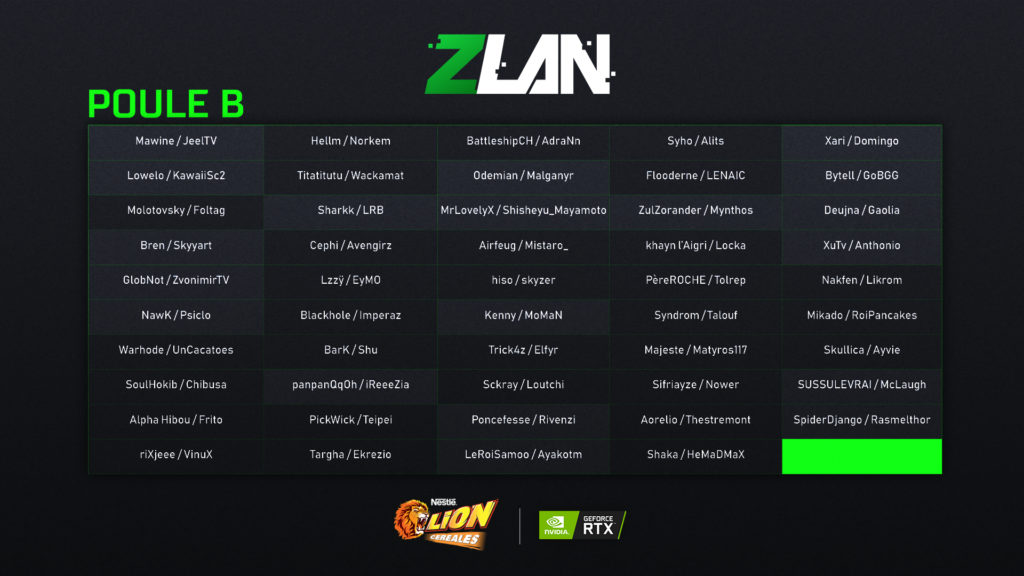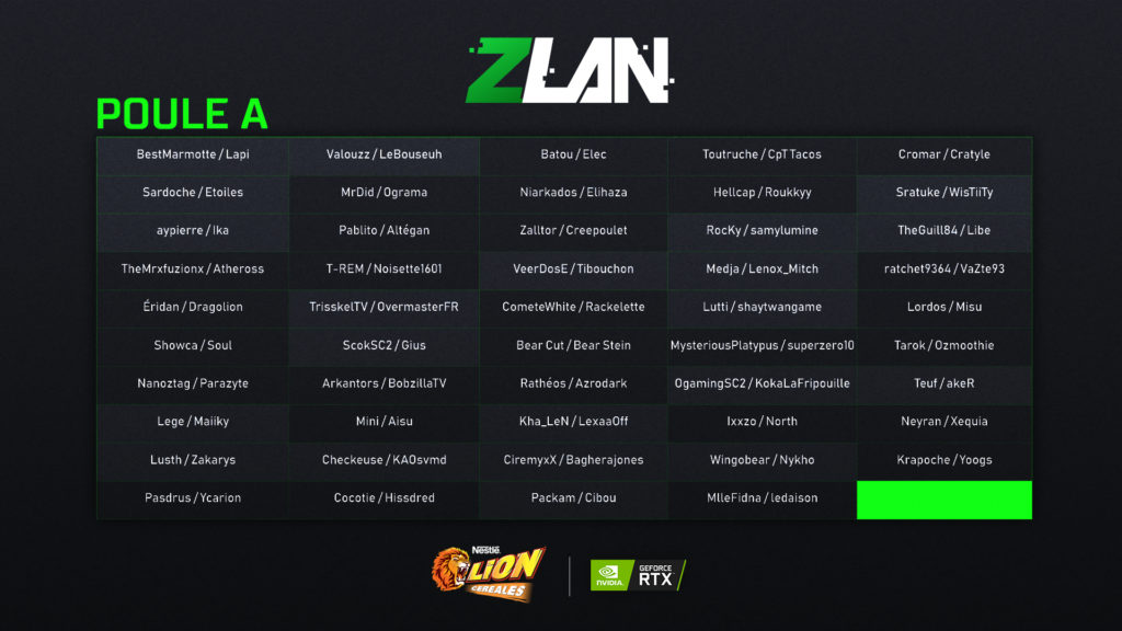 Lors du week-end du 11 et 12 mai, ZeratoR organise à Arles la première édition de la ZLAN. La compétition verra s’affronter 196 joueurs répartis en duo durant 2 jours,une compétition sur 10 jeux différents avec 50.000€ de cashprize à la clé. Tout au long de l’événement, ZeratoR sera accompagné de différents invités pour assurer le commentaire et le stream des différentes étapes du tournoi.